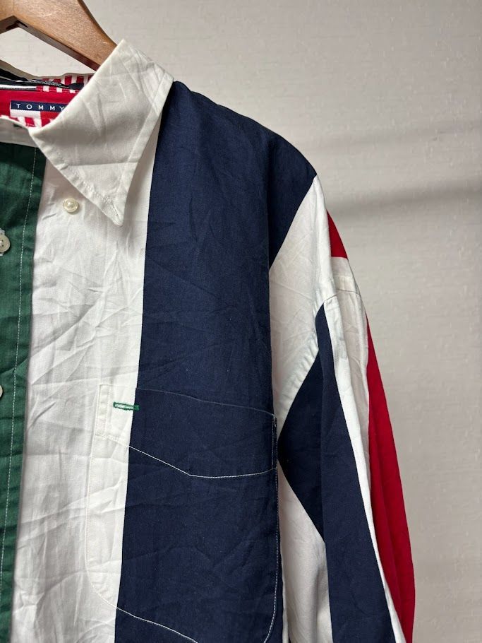 TOMMY HILFIGER カラーブロック シャツ ホワイト XL US古着