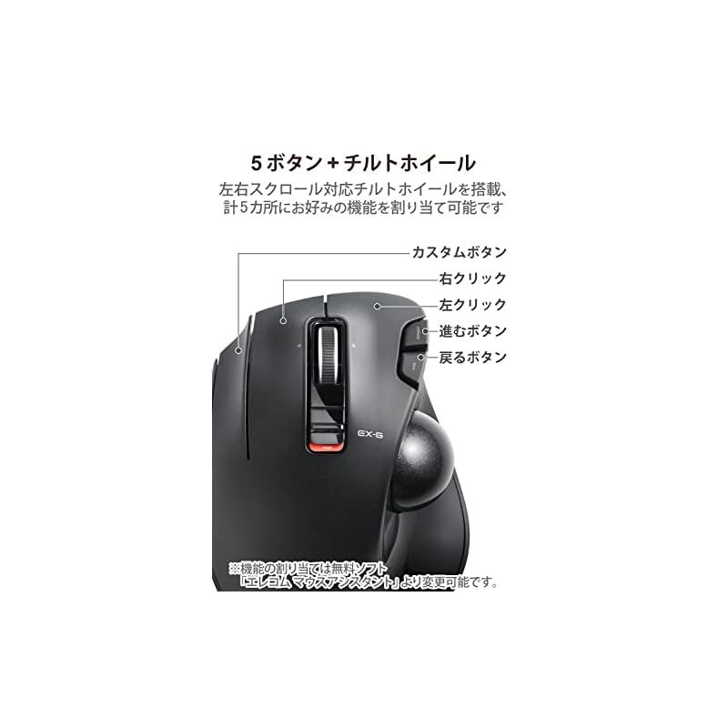 エレコム ワイヤレス トラックボールマウス EX-G 左手用 6ボタン チルトホイール(左右スクロール) ブラック M-XT4DRBK 0