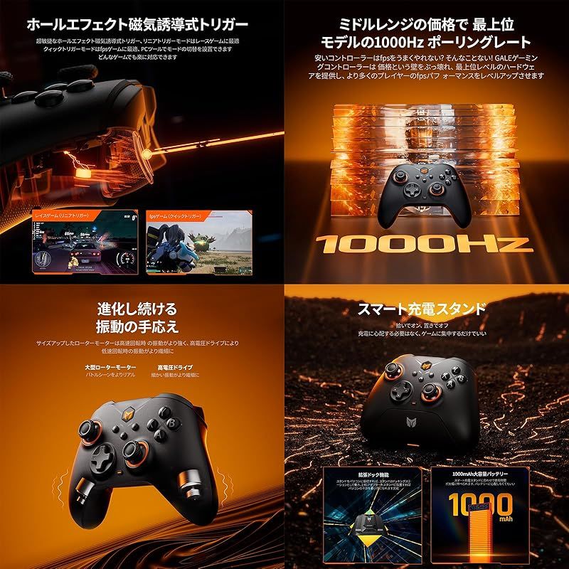 【商品概要】 【多機能ゲーミングコントローラー】Switch、PC Windows10&11、Android、iOS用Gale HallワイヤレスPCコントローラーは、4つのカスタムバックボタン、ホールジョイスティック、ホールトリガー、6軸ジャイロモーションコントロール、1000Hz有線ポーリングレート、ターボ、マルコ、 255レベル調整可能な振動、Hブリッジチップ、アンチデッドゾーンアルゴリズム、キーボードマッピング、スクリーンショット、1000mAhバッテリー、スマート充電スタンド、PCアプリ。 BlGBlG WON は、Gale Hall switch コントローラーのより包括的な進化に焦点を当てています。 【3つの接続で無制限の体験を実現】pc ワイヤレスコントローラーは3つの接続をサポートしています。 付属の Type-C ケーブルによる有線接続では素晴らしい照準体験が得られ、Bluetooth と付属の USB アダプターによるワイヤレス接続では無制限のゲームを楽しむことができます。 【HブリッジIC】新しくアップグレードされたHブリッジチップはモーターの正逆を制御し、引きずりのないサクサクした感触を実現します。 【マルチカーブアルゴリズム】ゲーム内のさまざまなシナリオのさまざまな感度要件に簡単に対応します。 【モーションコントロール】PCゲーミングコントローラーの「GYROCON+」テクノロジーにより、PC上のモーションエイミングゲームをサポートします。 Switchのモーションエイミング機能をオンにしないでください。 Switch はネイティブ モーション コントロールをサポートしています。 【4つのバックボタン】pc コントローラー 無線を使って、好きなように動かすだけです。 4 つのボタンでより多くの動きを実現し、マクロ、リマッピング、ターボをサポートします。 【デュアルモーター】デュアルモーターにより、真に繊細な振動体験を見つけることができます。 ゲイルの255段階振動からお好みの強さをお試しください。 【ホールジョイスティック】新世代のホール効果ジョイスティックは、正確性を保ち、ドリフトから守ります。 ショート、ミドル、ハイの 3 ペアのサムスティック。 【アンチデッドゾーンアルゴリズム】BIGBIG WONが独自開発したHURSTアルゴリズムにより、ホールジョイスティックは従来のものより優れています。 【ホール効果トリガー】ホールトリガーコントローラーの高精度トリガーはあらゆるゲームに最適で、レーシングゲームにはリニアトリガー、FPSにはクイックトリガー(ソフトウェア)が最適です。 【ポーリングレート】有線の場合は1000Hzのポーリングレート、3AおよびFPSゲームでは楽しむ。 【50ステップマクロ】PCアプリでPCワイヤレスコントローラー用の50ステップマクロをプログラムするだけです。 APPでの記録と編集をサポートします。【適応キャリブレーション】キャリブレーションなし、ドリフトなし。 BIGBIG WON アダプティブ キャリブレーションにより、何も操作せずにドリフトを最小限に抑えることができます。 【キーボード値マッピング】PC ゲーム コントローラーは、BIGBIG WON PC APP を通じてキーボード値マッピングを可能にします。 コントローラーを制御する新しい方法をお楽しみください。 【***音声はサポートされていません***】 【BIGBIG WON PC APP】ワイヤレスゲームコントローラーは、キー マッピング、マクロ、ターボ、デッドゾーン、モーション コントロールなどを簡単にカスタマイズできます。 【充電スタンド】 持ち上げるとプレイ、置くと充電。 ゲームに集中するのに役立ちます。 【1000mAhバッテリー】10時間以上のゲーム。 1000mAh バッテリーは、Gale Hall ワイヤレス コントローラーに長時間電力を供給し、最大 10 時間の激しい使用に耐えます。 【パッケージ内容】1*BIGBIG WON Gale Hallゲームパッド、3ペアのサムスティック、1*2.4G USBドングル、1*type-cケーブル、1*充電スタンド、1*ユーザーマニュアル。 すべてのBIGBIG WONワイヤレスBluetoothコントローラーは品質のために出荷前に厳密かつ慎重に検査されており、欠陥のない完全な内容をお届けします。 30日間の無料交換または全額返金、販売前および販売後のすべての質問に対する生涯サービス、私たちは常にここにいて、あなたと一緒にいます! 【商品説明】 About BIGBIG WON BIGBIG WON is specialized in research and production of a wide range of controllers for game consoles, joysticks for video games and video game consoles to improve your gaming experience and let you enjoy the fun of game playing. Strict quality control is implemented in all aspects of operations to meet the needs of customers', high-qualified products thanks to our experienced development, production engineers and skilled industrial workers. We have built up a good reputation among our customers due to our quality-assured products and perfect pre-sales and after-sales system. We warmly welcome you to contact us if you have any queries on our products. 【商品詳細】 ブランド:BIGBIG WON 商品種別:パソコン・周辺機器 商品名:コントローラー、BIGBIG WON Gale Hall PCコントローラー、モーションコントロール、ホールジョイスティック&トリガー、3ペアのサムスティッ