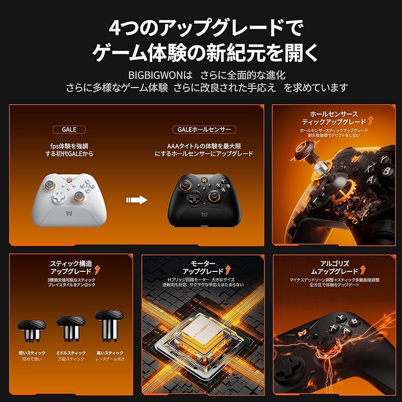 コントローラー、BIGBIG WON Gale Hall PCコントローラー、モーションコントロール、ホールジョイスティック&トリガー、3ペアのサムスティック、Switch/PC/iOS/Androidワイヤレスアプリゲームパッド用 (黒) 1