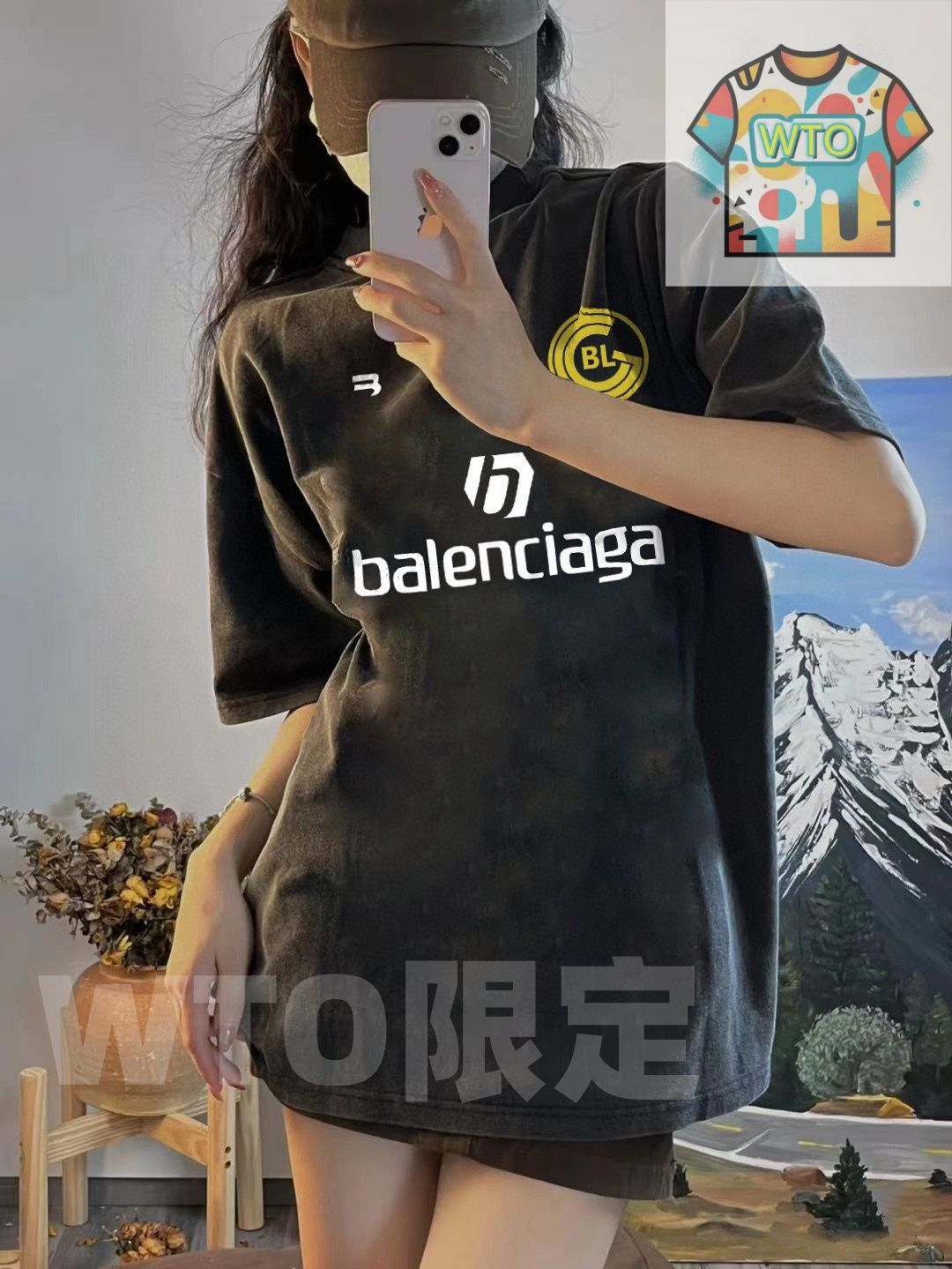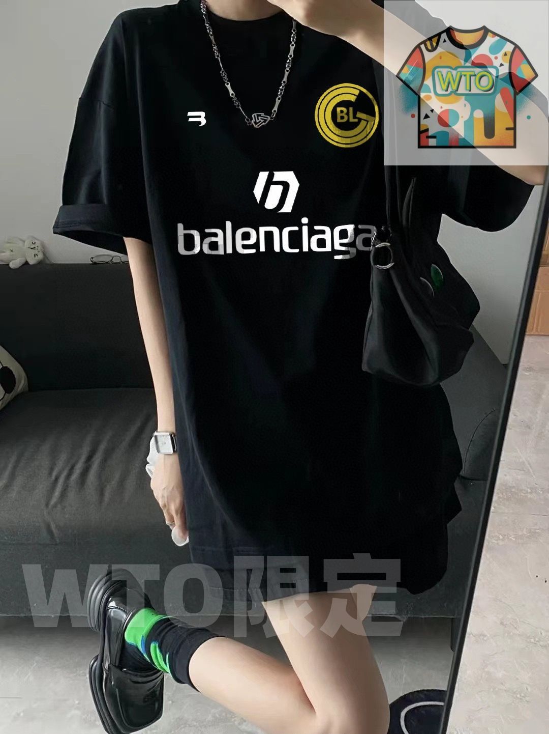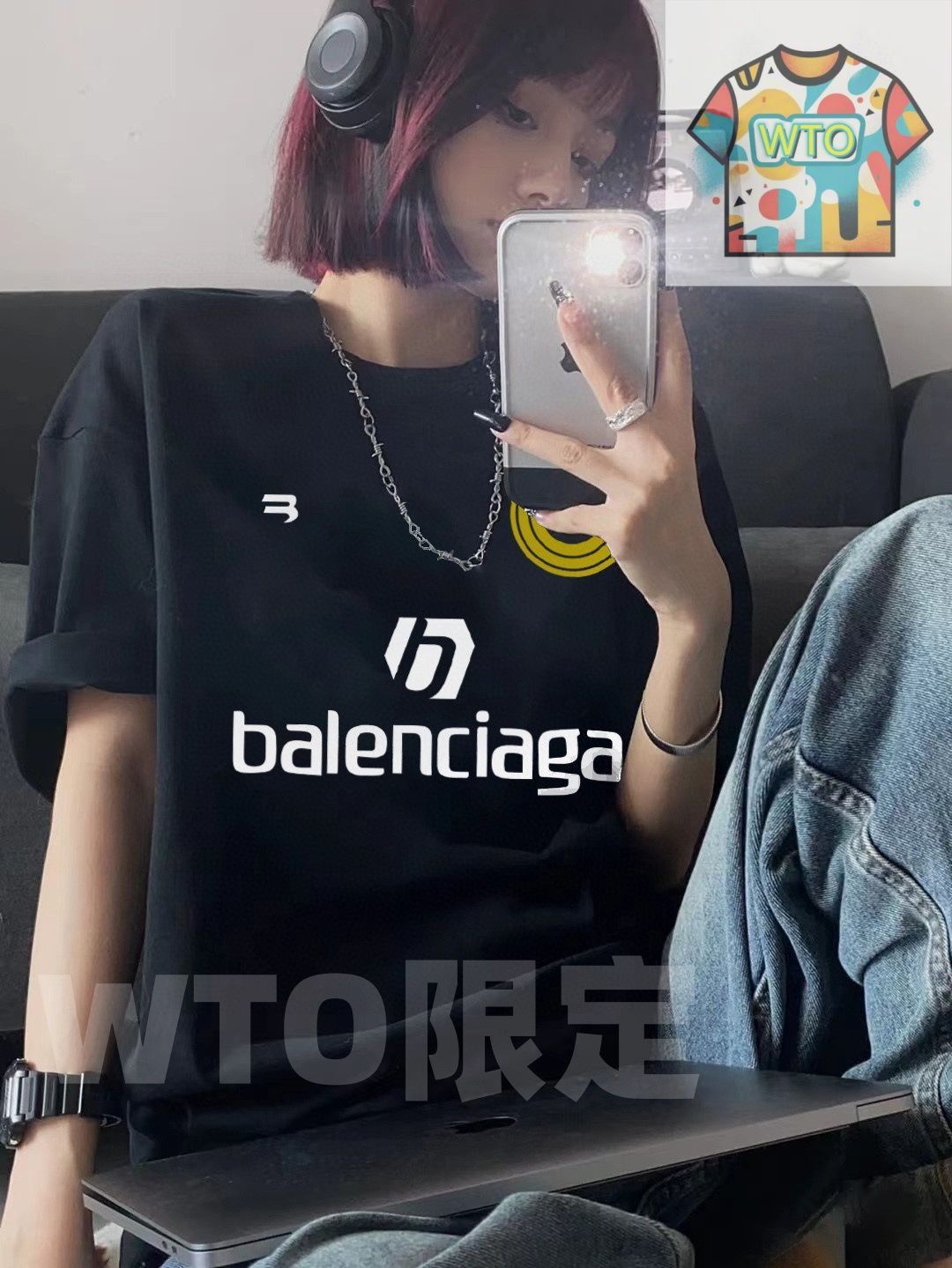 この半袖はバレンシアガのコラボレーションモデルで、最新のデザインです。大きな字母ロゴプリントが目を引き、ファッション感たっぷりです。