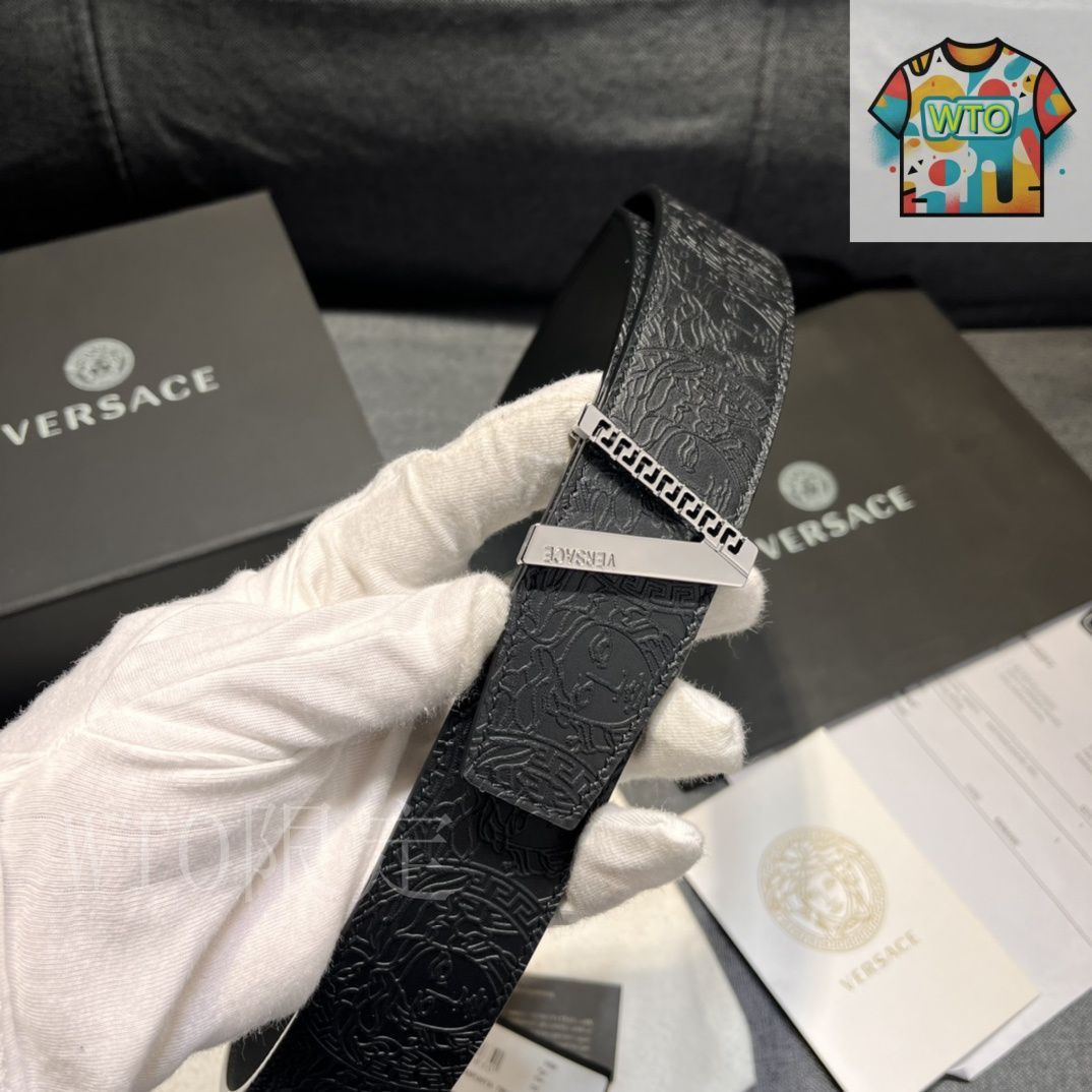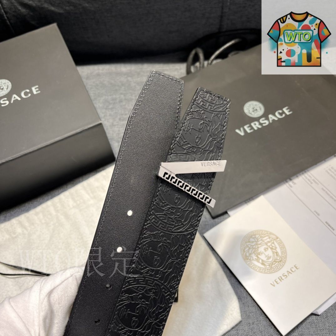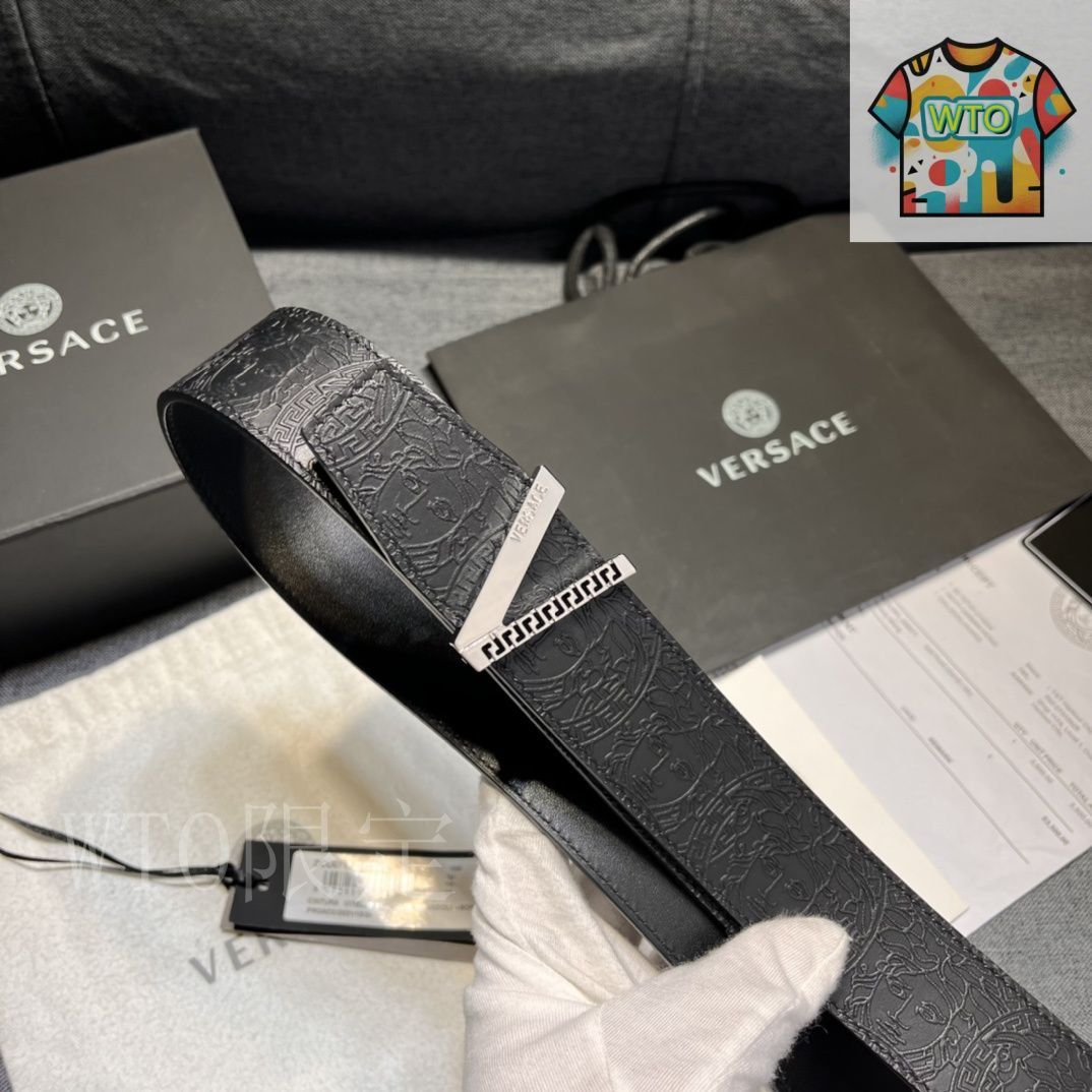 【今日特価】VERSACE 4.0cm V Greca デザイン メンズベルト