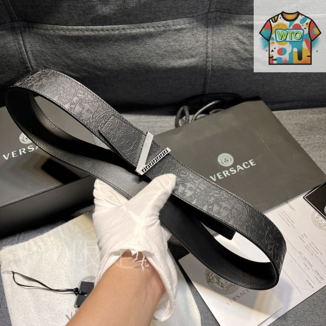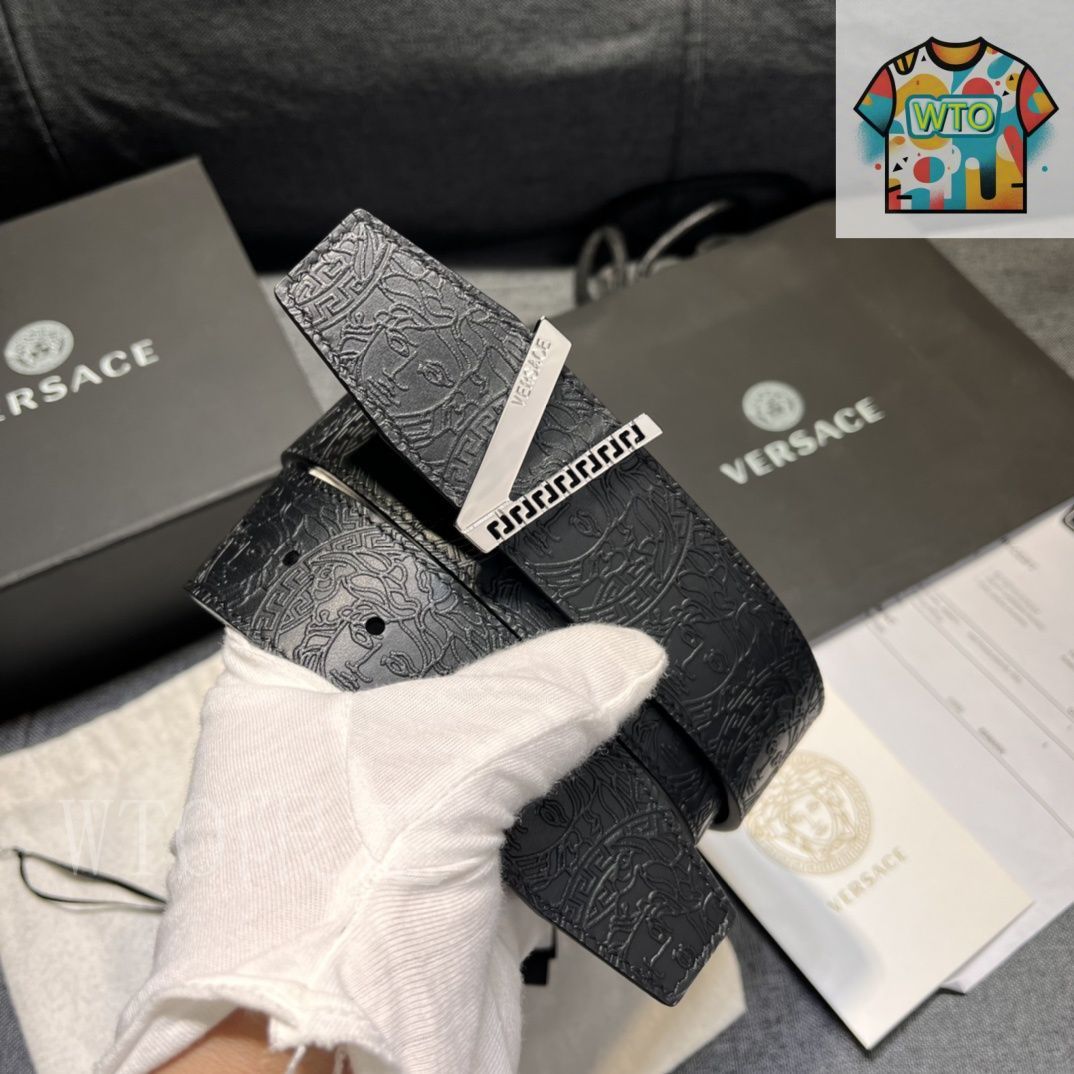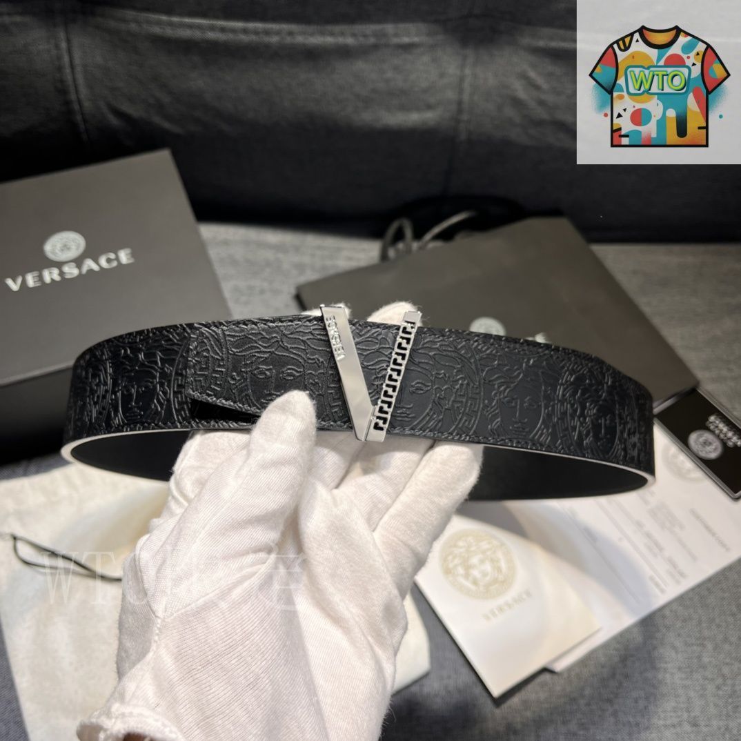 【今日特価】VERSACE 4.0cm V Greca デザイン メンズベルト