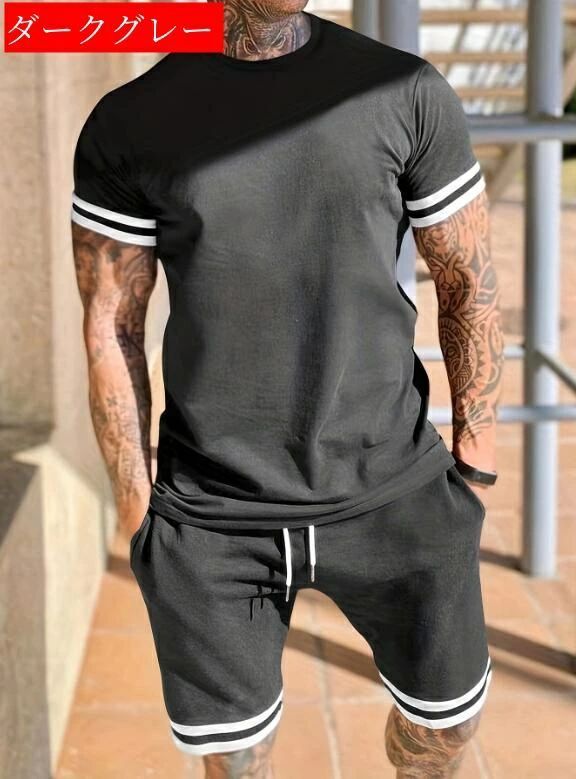 2点セット 上下セット メンズ トレーニングウェア?ジムウェア?ランニングウェア スポーツ Tシャツ 半袖 トップス ショートパンツ セットア