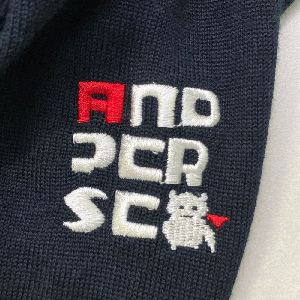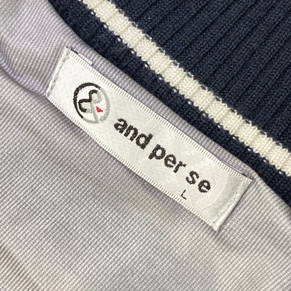 サイズ:L AND PER SE アンパスィ 裏地付 ハーフジップ ニットセーター バックボーダー柄 ネイビー系 [240101418184] ゴルフウェア メンズ ストスト