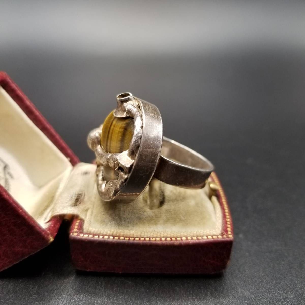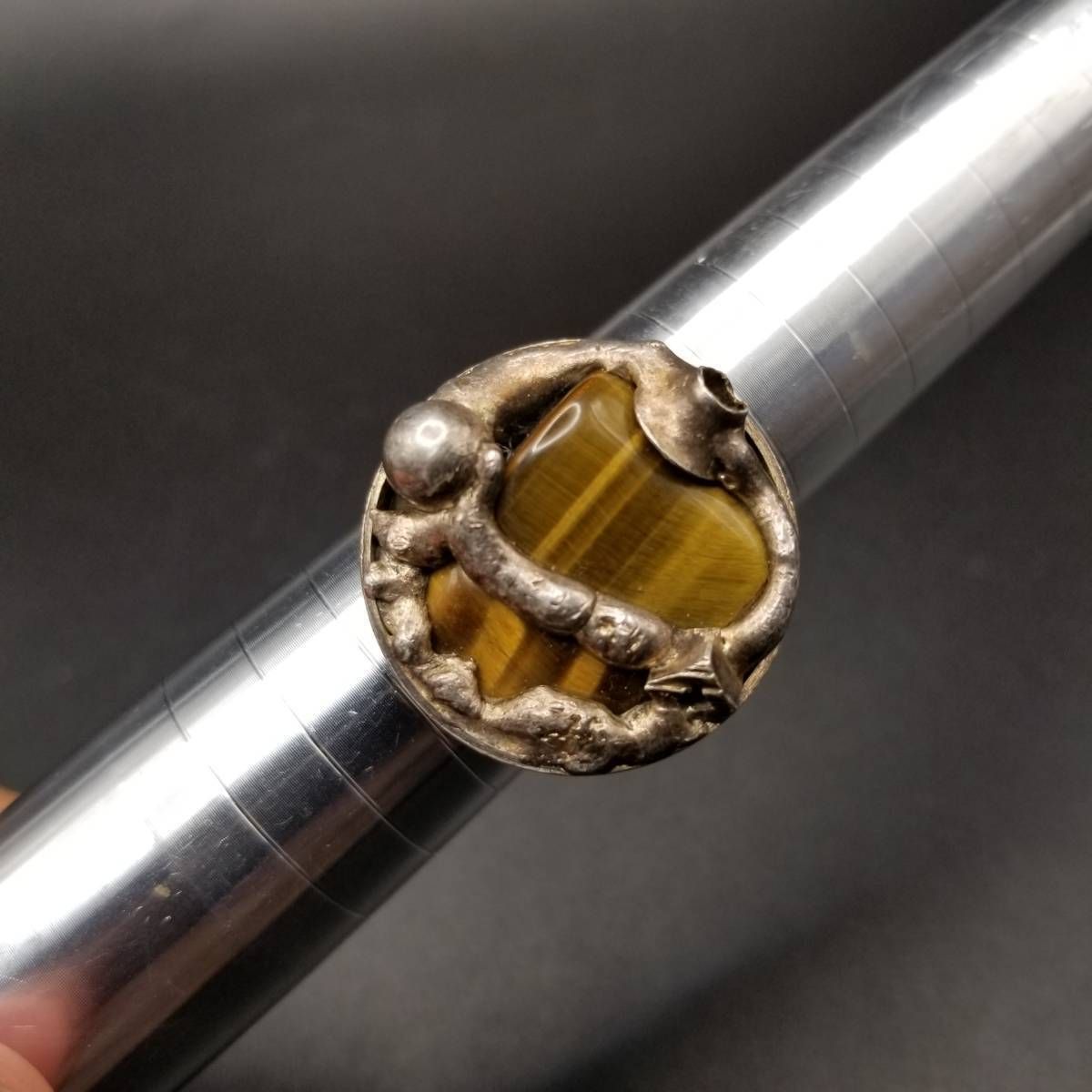 Wiggers Handmade Denmark タイガーアイ シルバー ビンテージ リング 指輪 レトロ ジュエリー 輸入 8Y-N