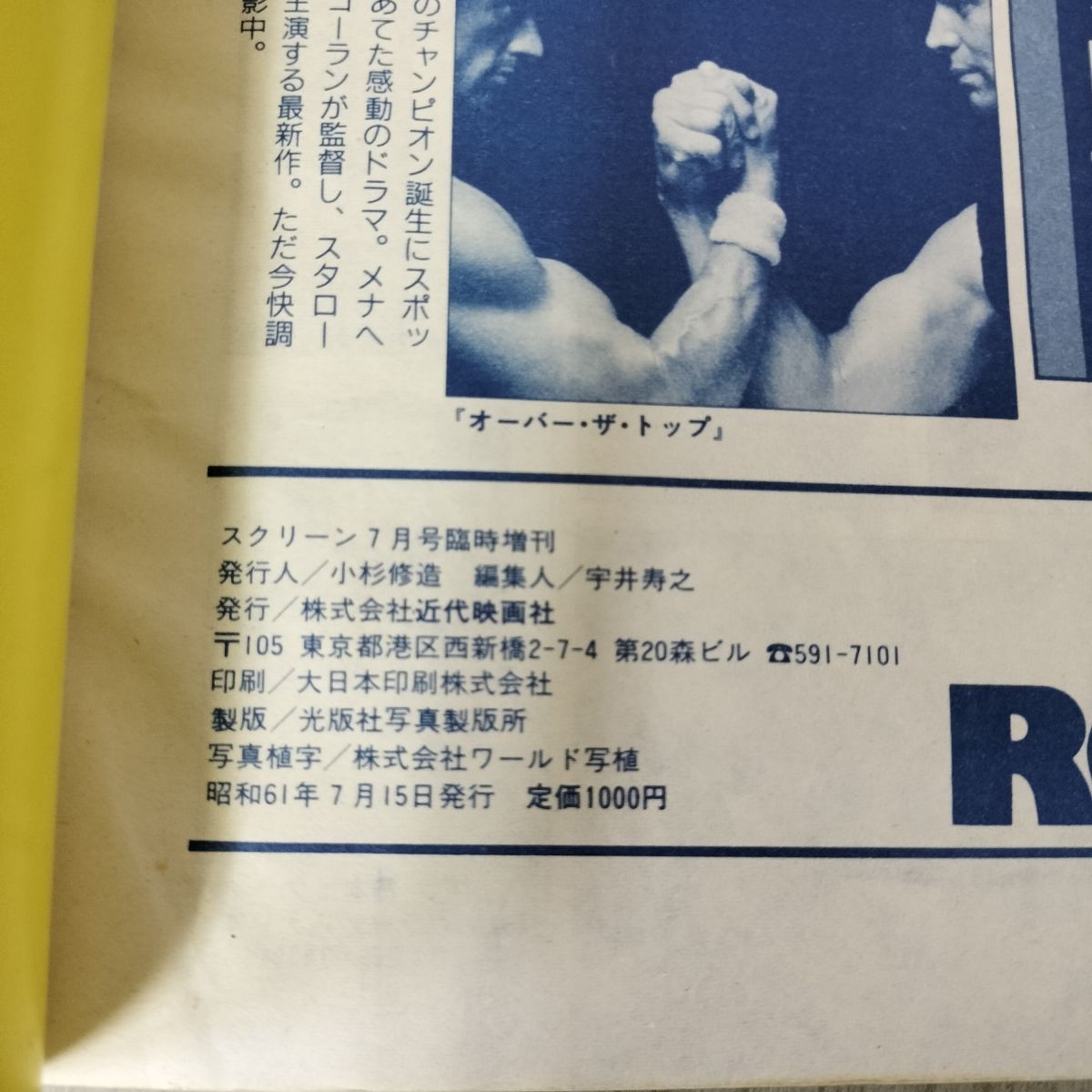 シルシルベスター・スタローン☆ロッキー4 炎の友情 特集号 昭和61年7月 スクリーン 210114