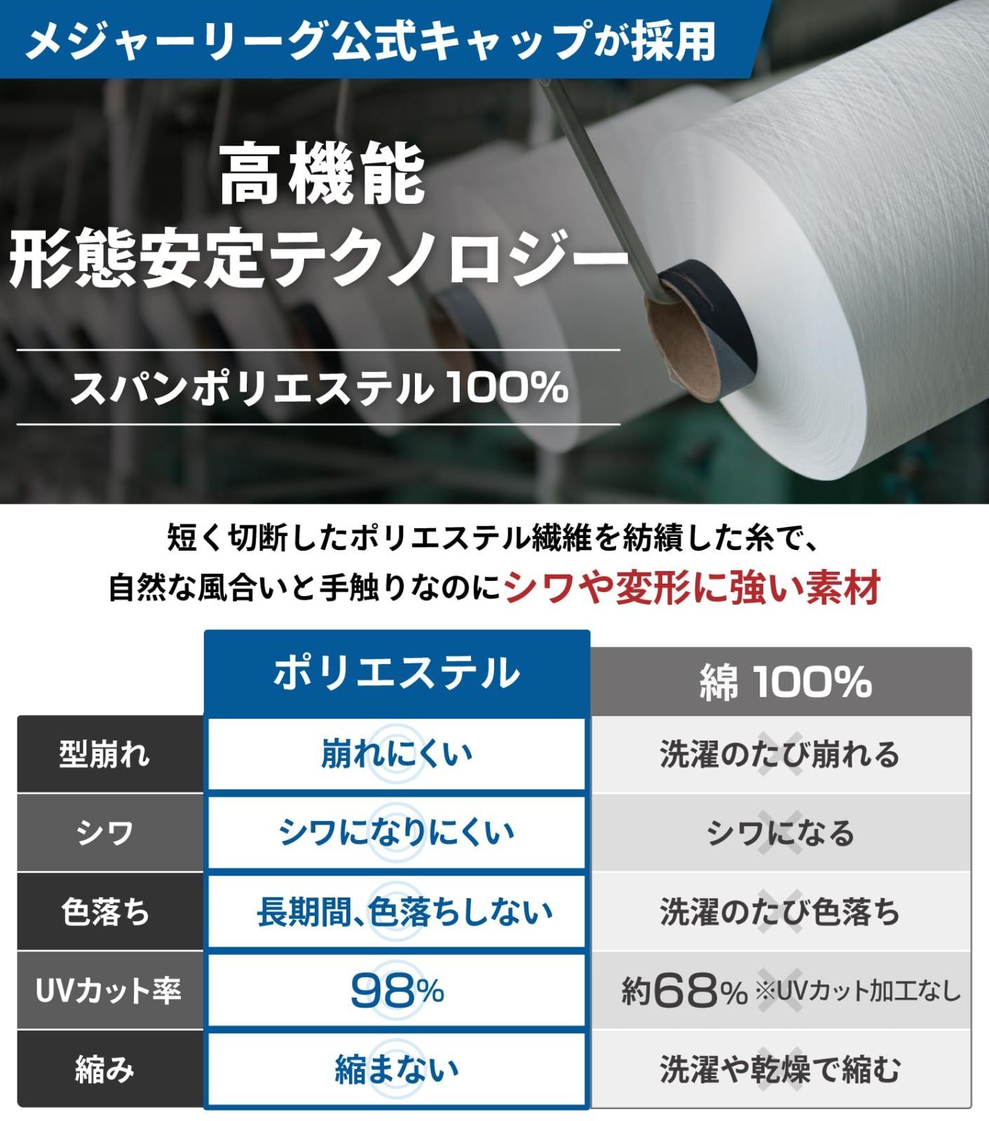 【Point.04】二重構造で形をキープ。キャップの型崩れを防ぎ、きれいなシルエットが 長持ちするように、前面の内側は二重構造になっています。