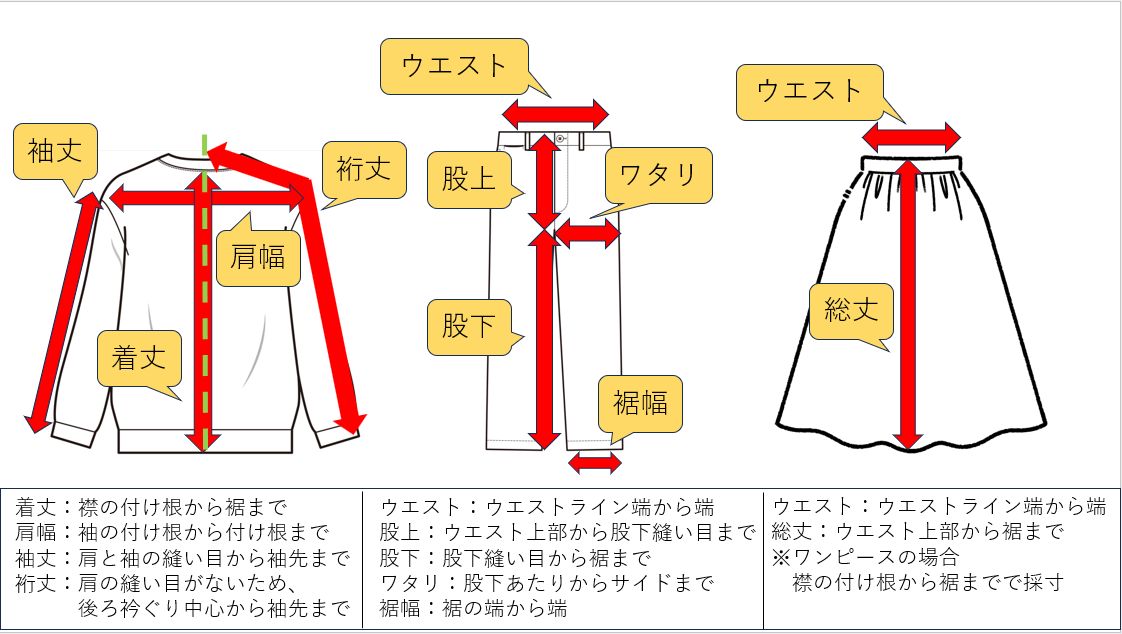 平置き採寸です。あくまでも素人採寸ですので、多少の誤差が出る場合もござます。