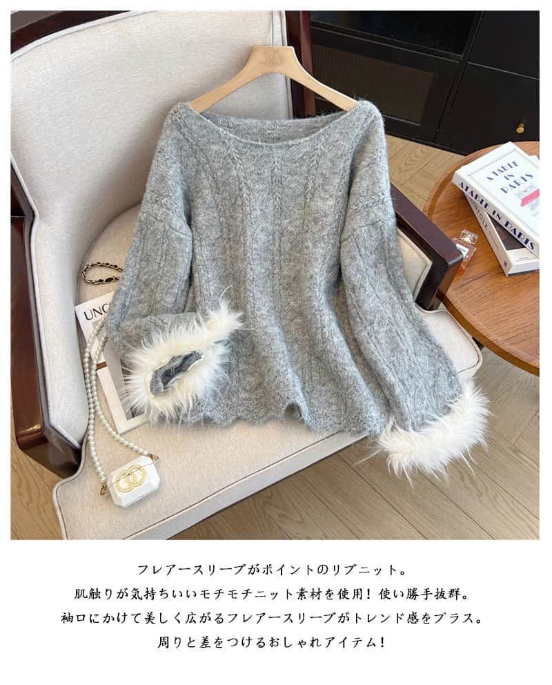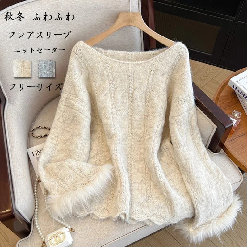 セーター ニット レディース カットソー 未使用 秋 冬 フレアスリーブ 長袖セーター クルーネック リブニット トップス 体型カバー キレイめ 上着 柔らか 長袖 ニットセーター おしゃれ かわいい フレア袖xkxiaoz185