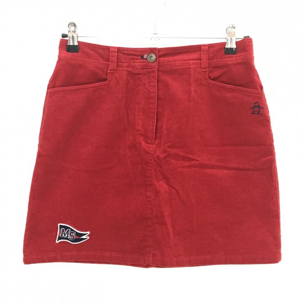 【超美品】マンシングウェア スカート レッド コーデュロイ ロゴ刺しゅう ストレッチ レディース 9 ゴルフウェア Munsingwear