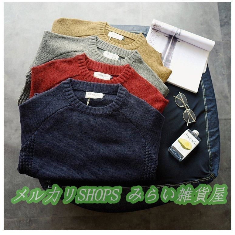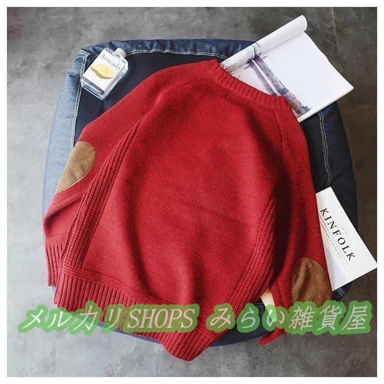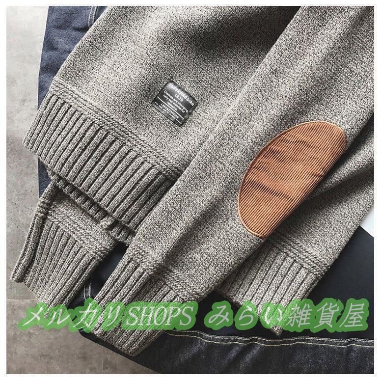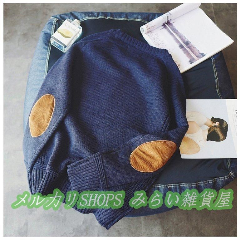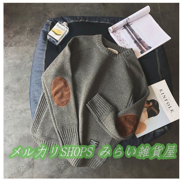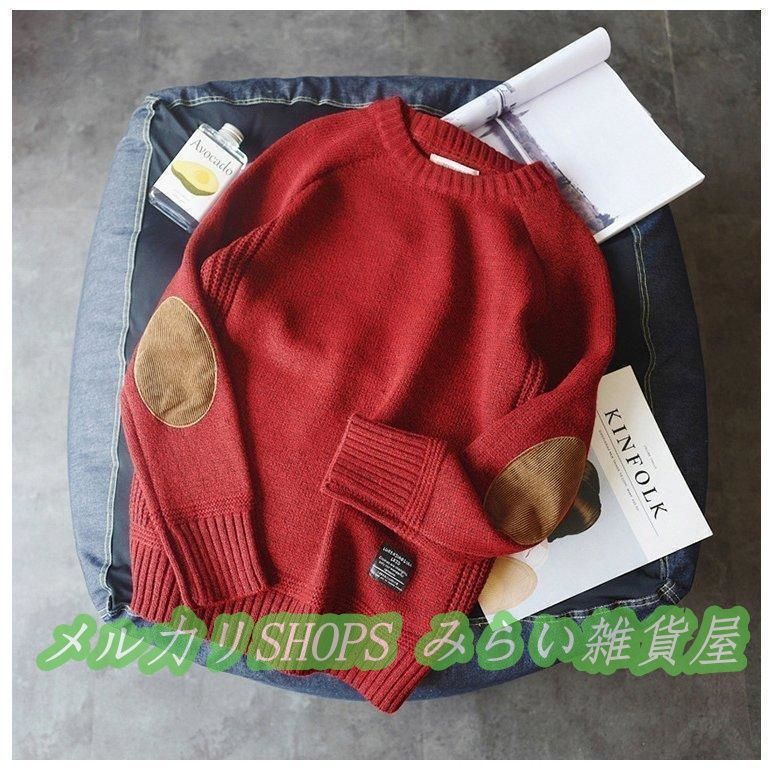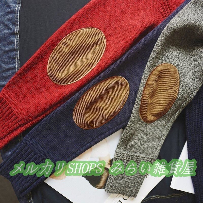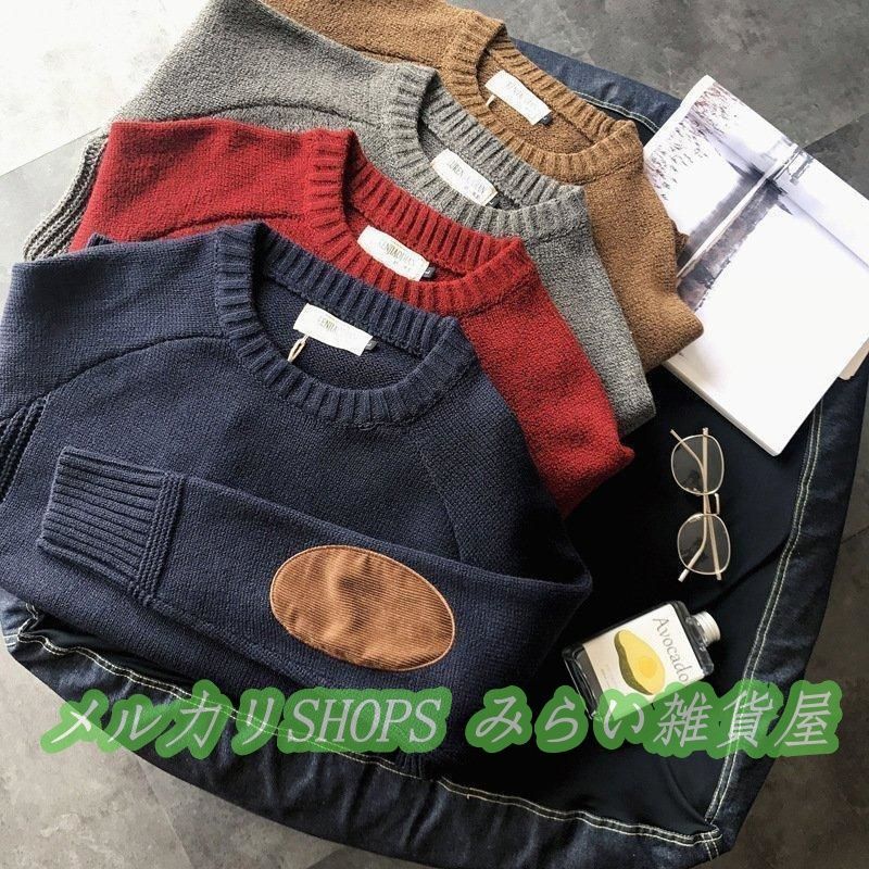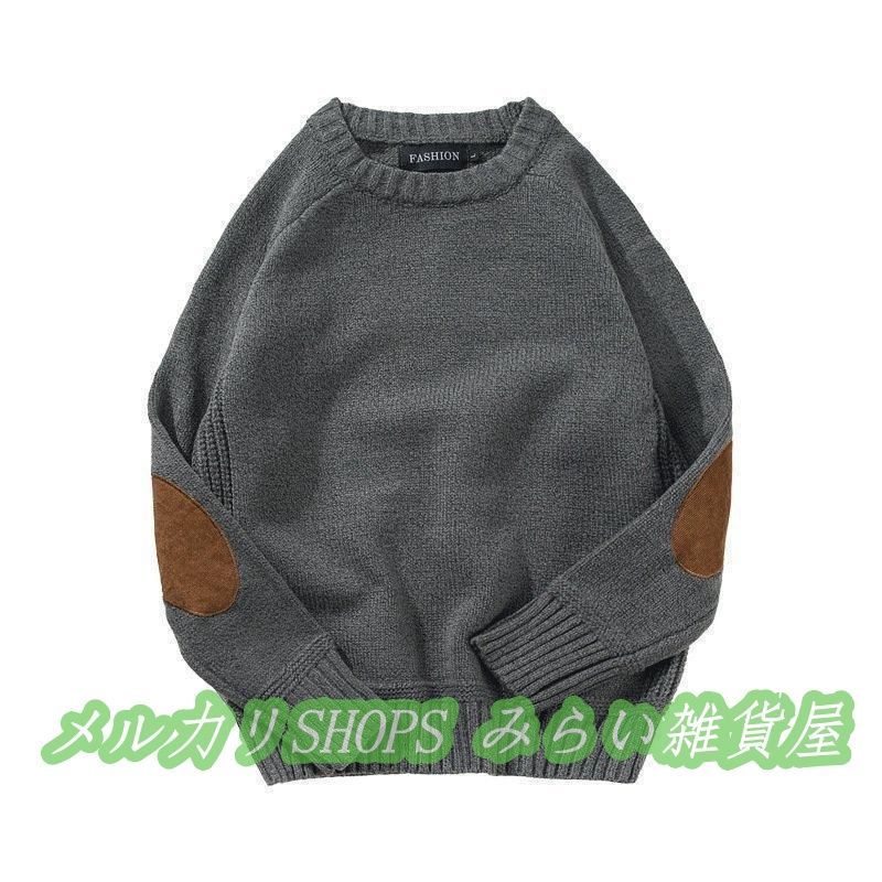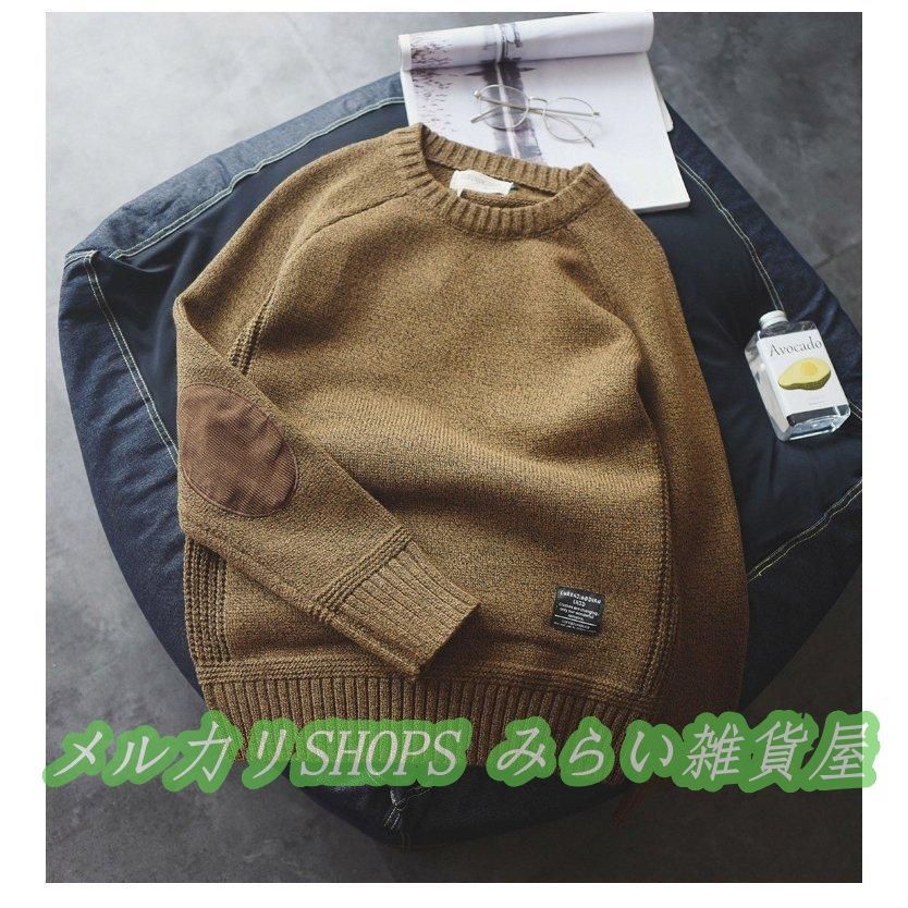 ニットセーターメンズニット秋ス長袖クルーネック肘当て付きエルボーパッチリブ編み秋冬冬服セーター冬新作防寒あったか1111
