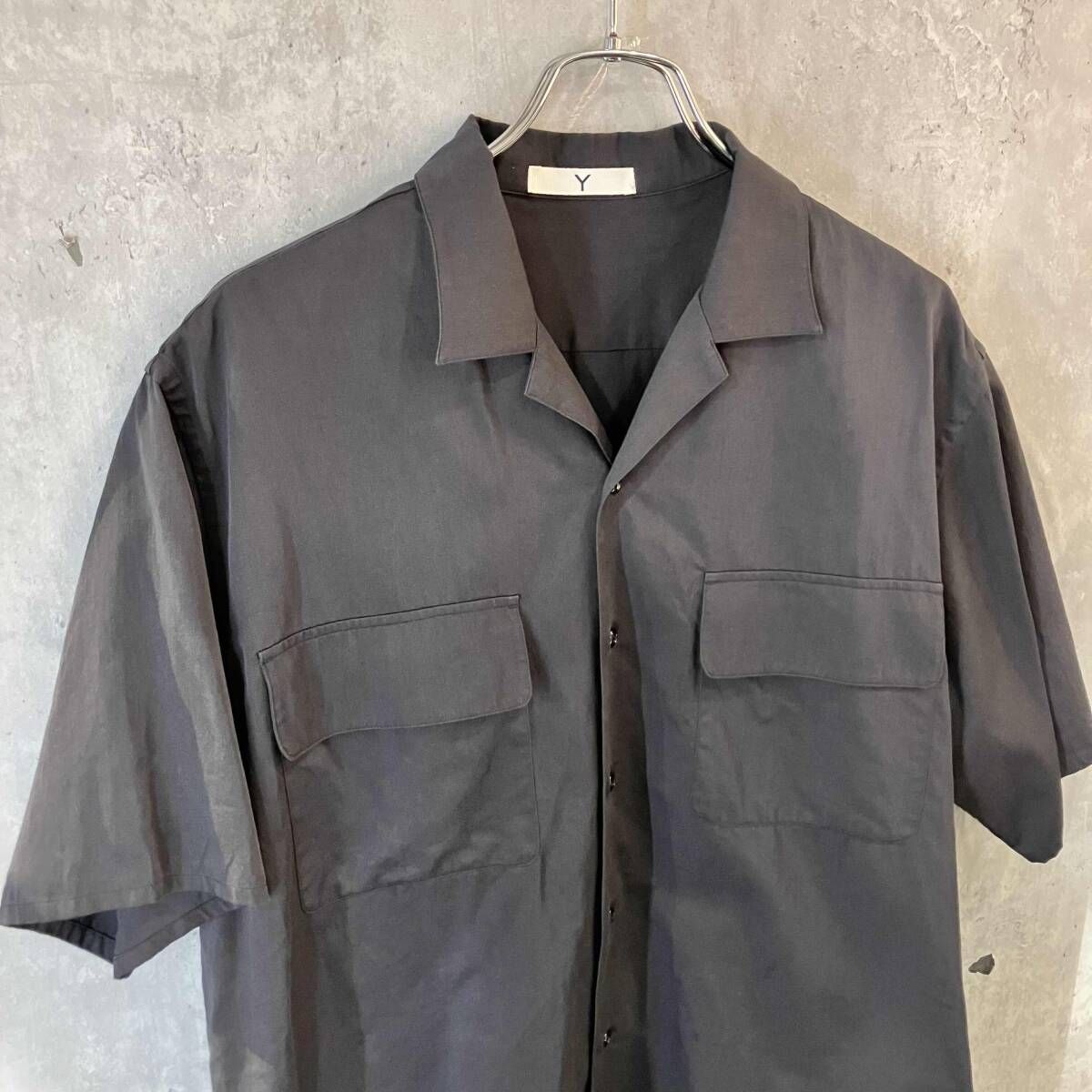 24ss Y ORGANIC COTTON WASHER SATIN OPEN/C SH 半袖シャツ Mサイズ ブラック 165-5150343 ワイ