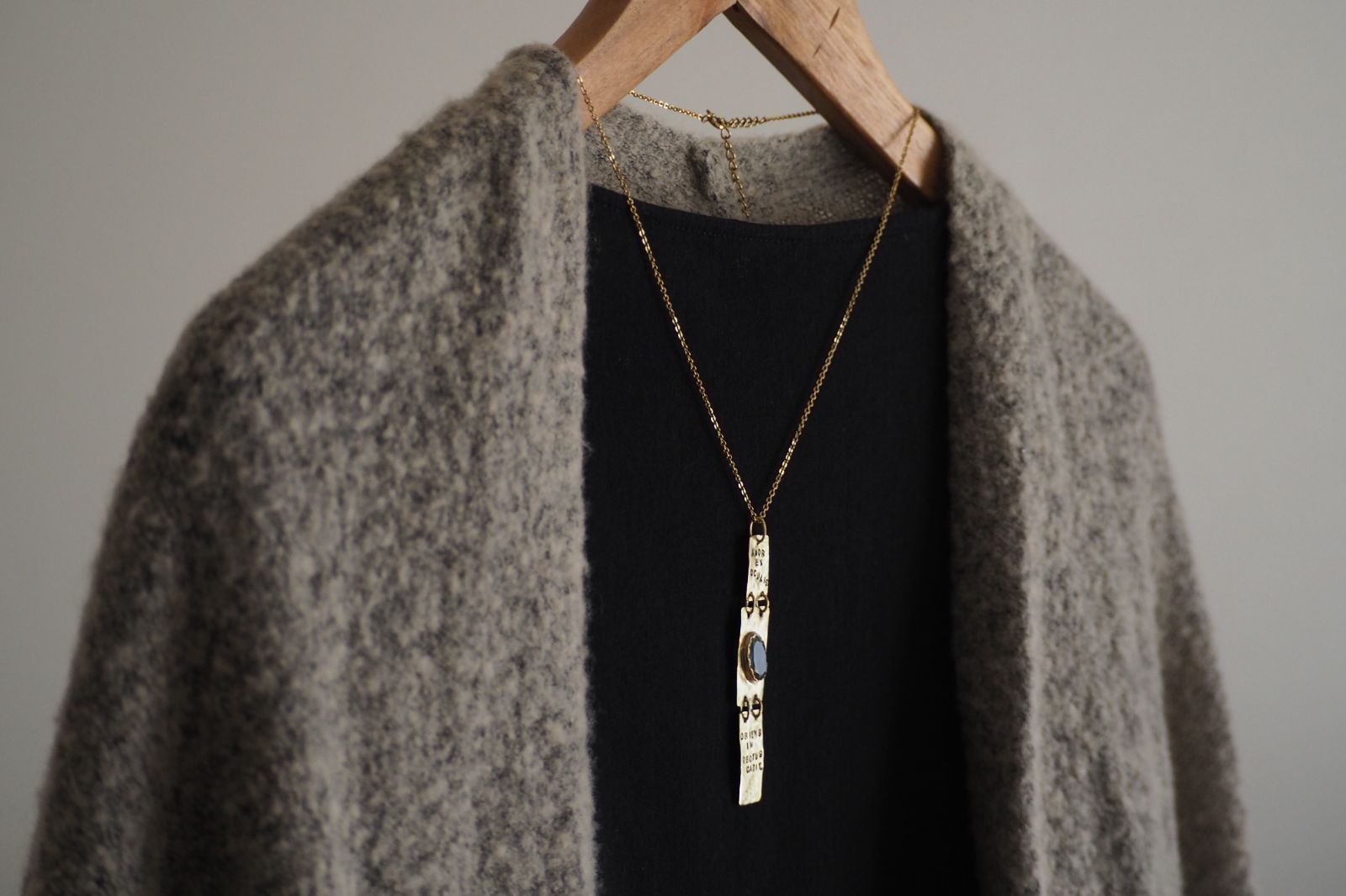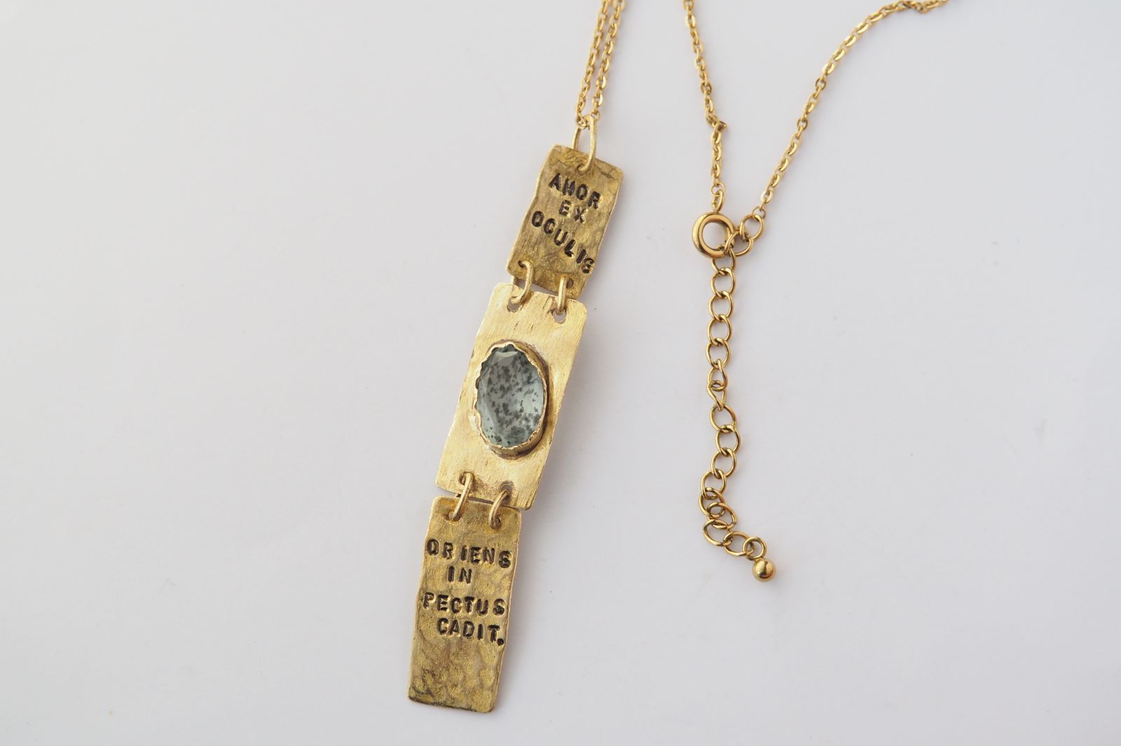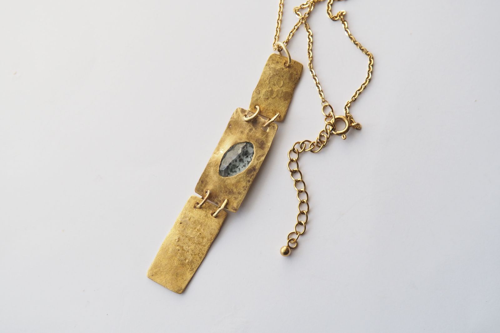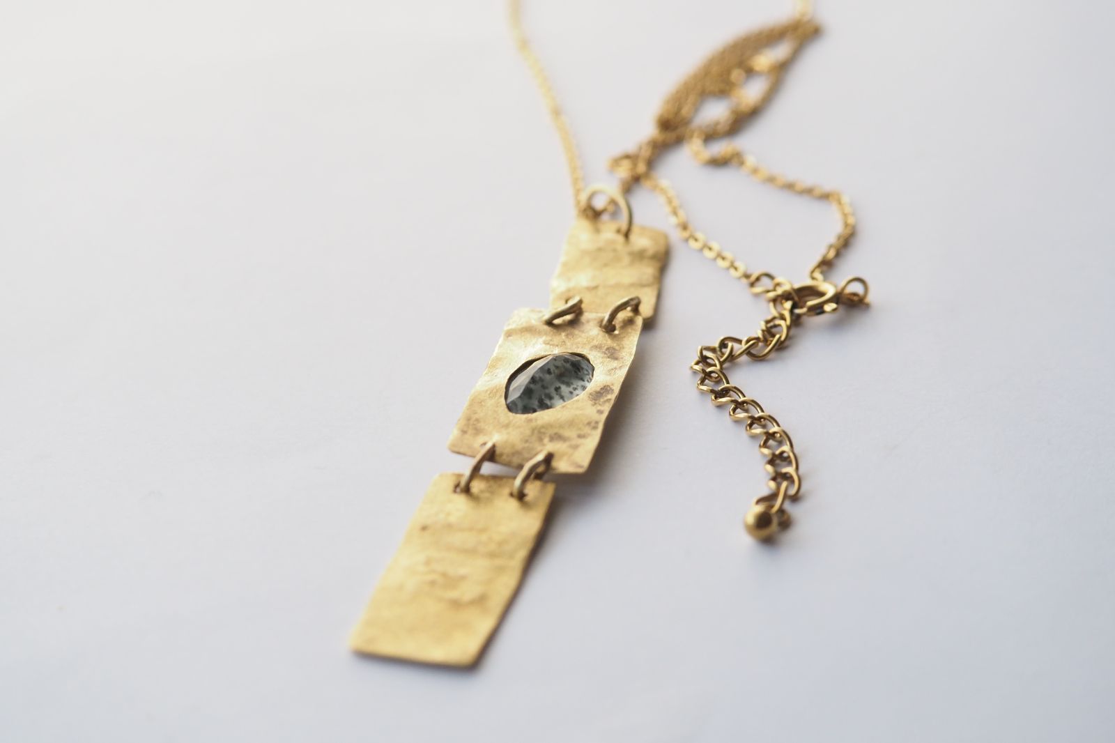 モスアクアマリンをつかったコンテンポラリーな真鍮のネックレス