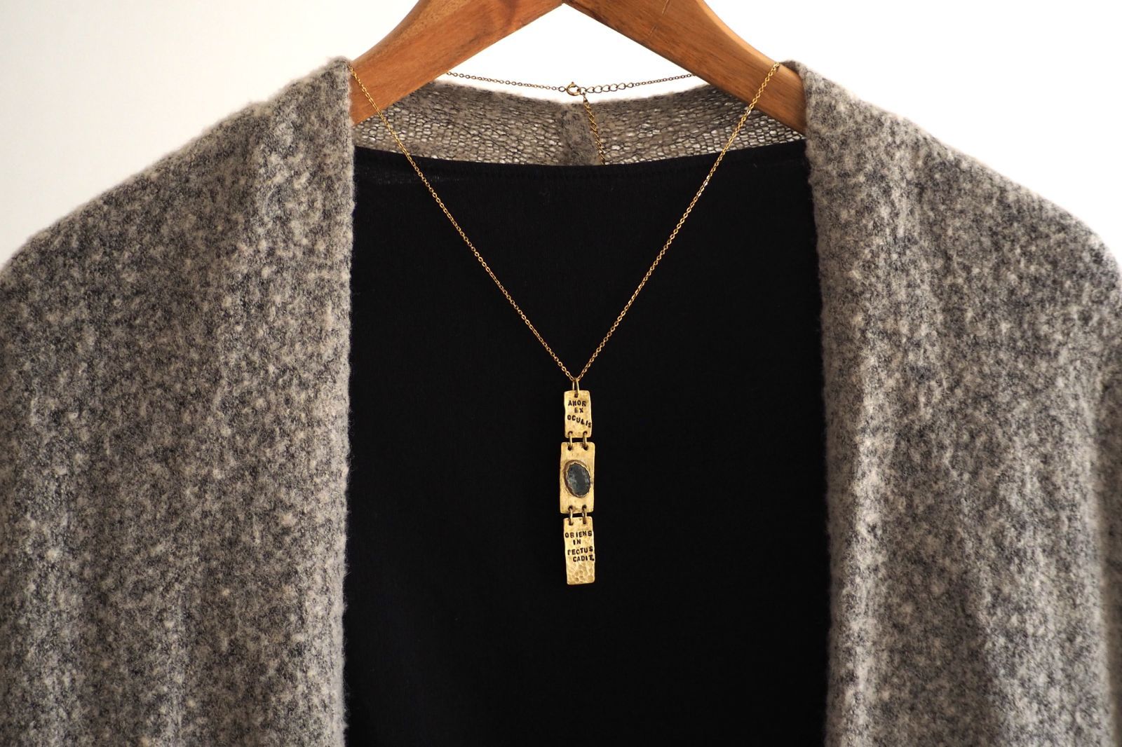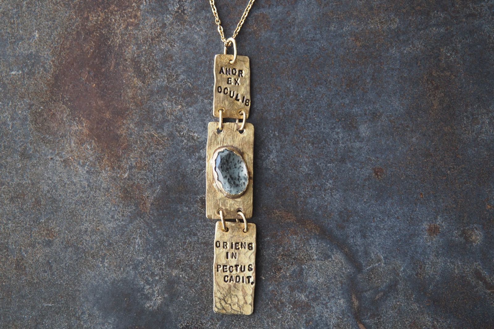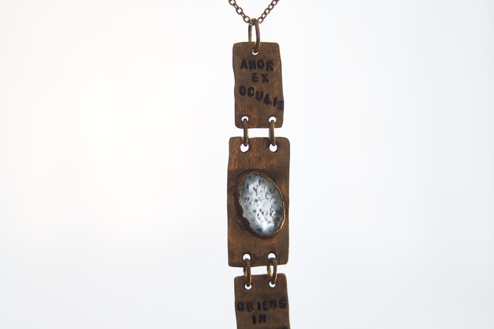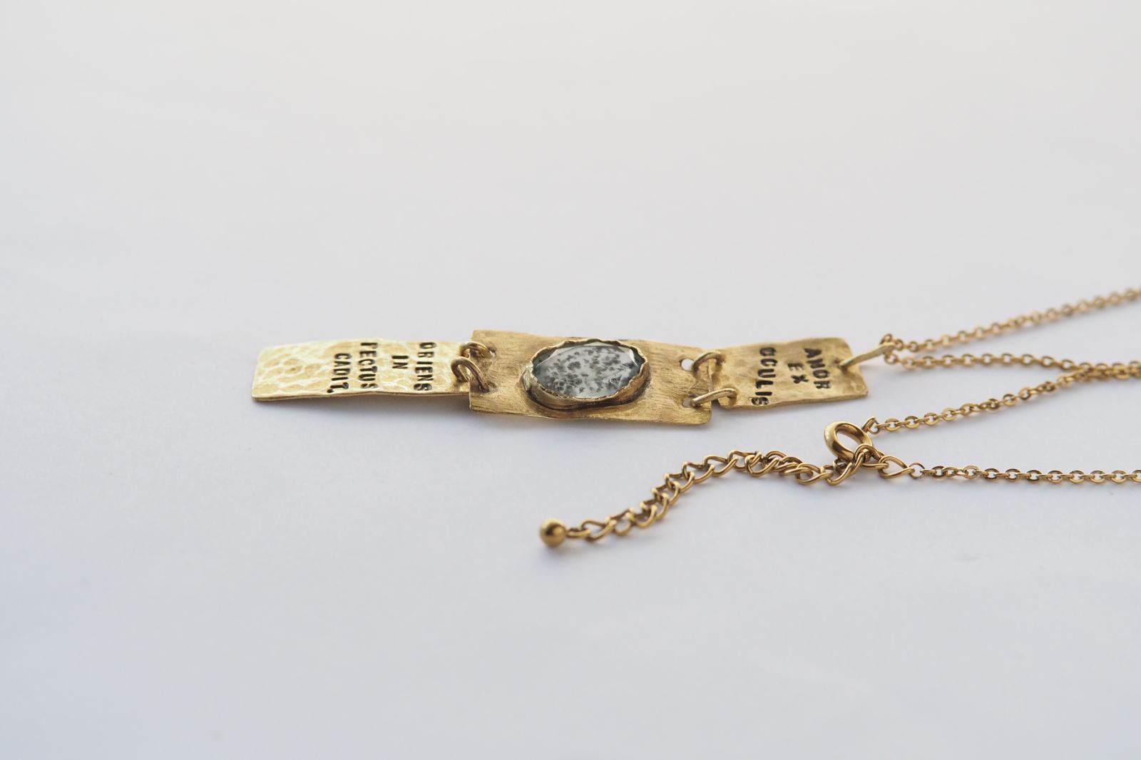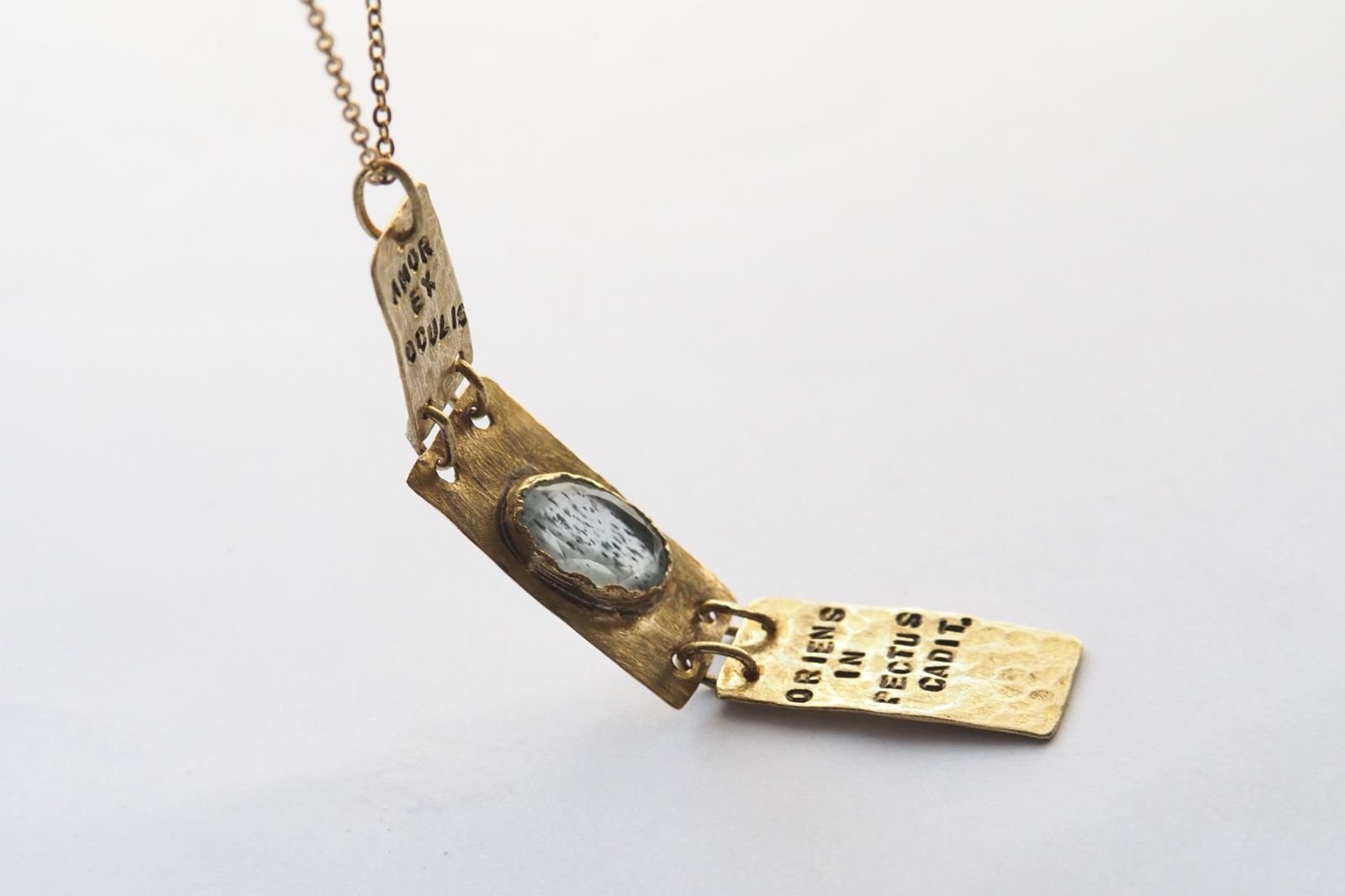 モスアクアマリンをつかったコンテンポラリーな真鍮のネックレス