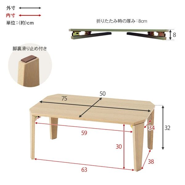 【送料無料】【幅75cm】くすみカラー 折れ脚テーブル 子供部屋 折りたたみ