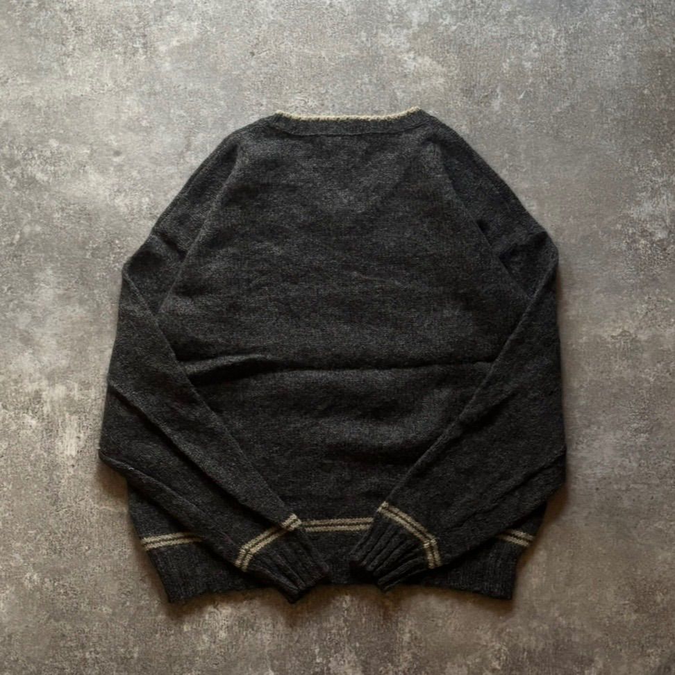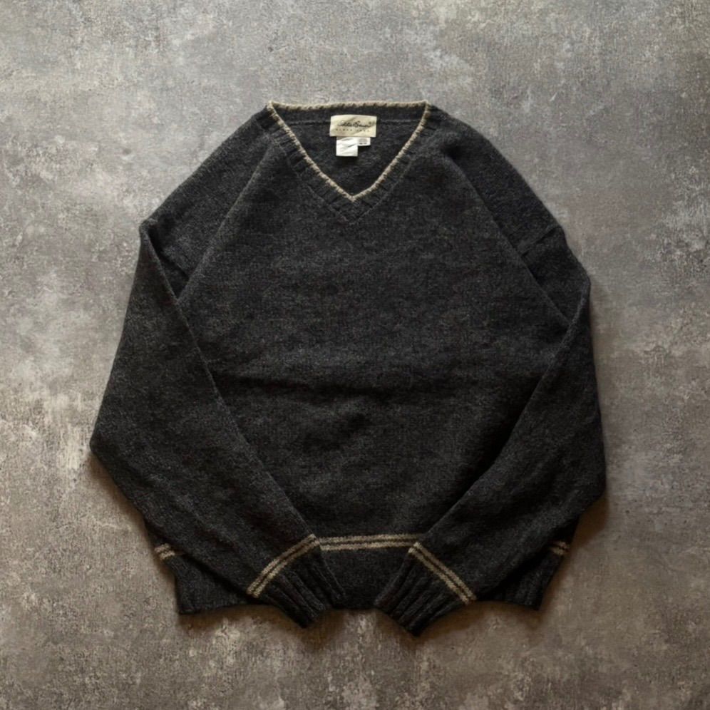 90年代 90s Eddie Bauer エディーバウアー 白タグ Vネック ウール ニット セーター グレー USA製 アメリカ製