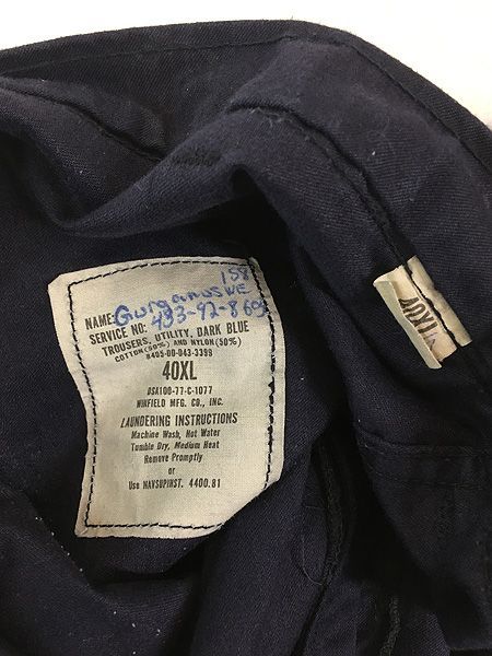 古着 70s 米軍 US NAVY 「Utility Dark Blue」 ミリタリー ステンシル ネイビー ベイカー パンツ フレア ミント!! W37 L32