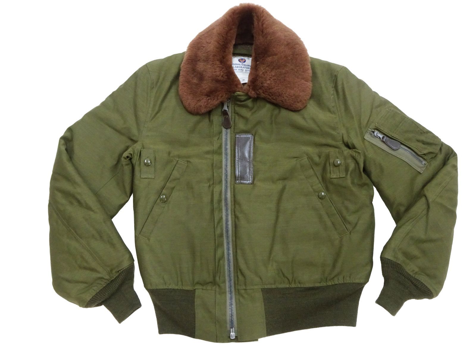 B-15シリーズは、1943年に登場したコットン製のB-10を改良した後継モデルです。1940年代中期・大戦末期から採用されたType B-15(オリーブコットンシェル+アルパカライニング)は、さらに改良が加えられ、B-15A(オリーブコットンシェル+アルパカライニング オフセットジッパー)、B-15B(オリーブナイロン+中綿)、B-15C(エアフォースブルーナイロン+中綿)、B-15D(セージグリーンーナイロン+中綿)へと変遷を遂げました。また、B-15シリーズからムートン襟をボディから取り外しウールリブニットを付け直したModified」(MOD.)モデルが製作され、のちのMA-1のベースになりました。