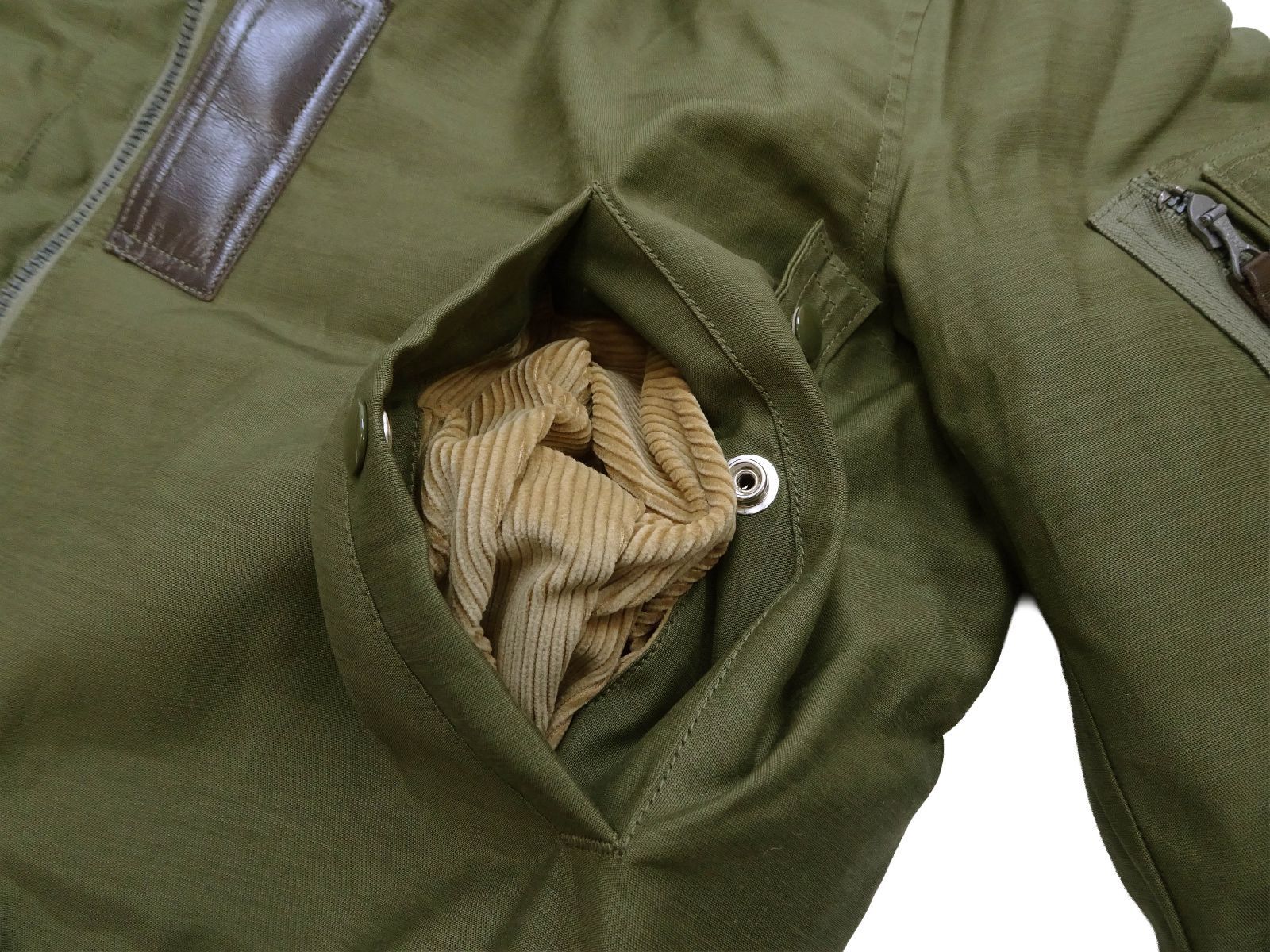 ※このジャケットは、当時の規格を忠実に再現するために天然素材を使用しています。身頃裏地、袖裏地にはアルパカウールパイルが採用されています。そのため、ナイロンやポリエステルなどの化学繊維の裏地に比べて、着用時に袖を通しにくいことや、ゴワツキ感を感じたり、インナー毛が付着することもございますので、予めご了承ください。