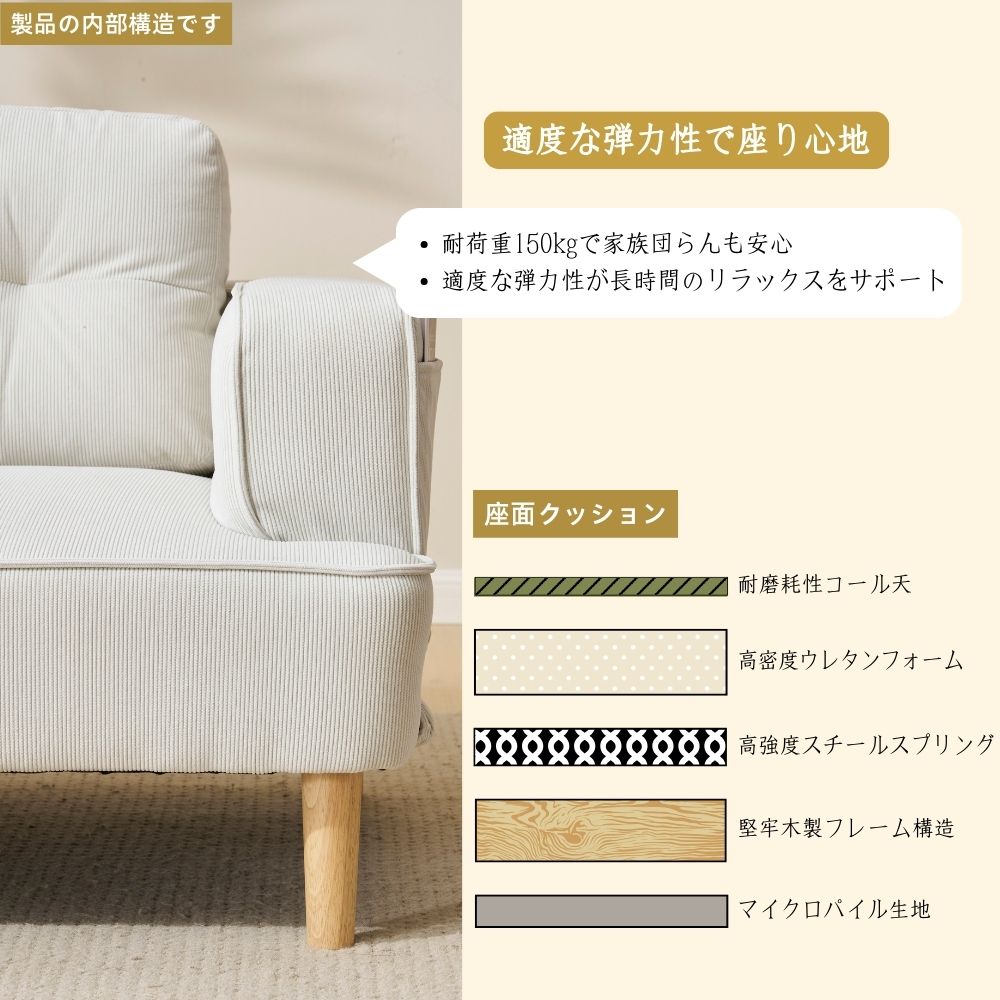 【追加の快適サポート】同色のクッションが付属しており、ソファとのコーディネートが完璧です。クッションは腰部をしっかりサポートし、さらに快適さを向上させることで、リラックスした時間をより一層楽しむことができます。