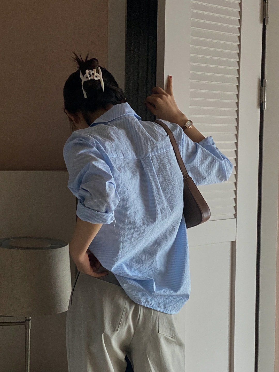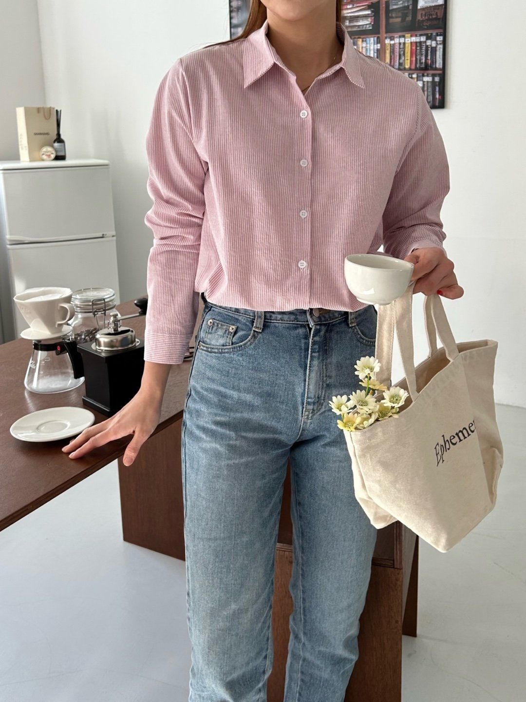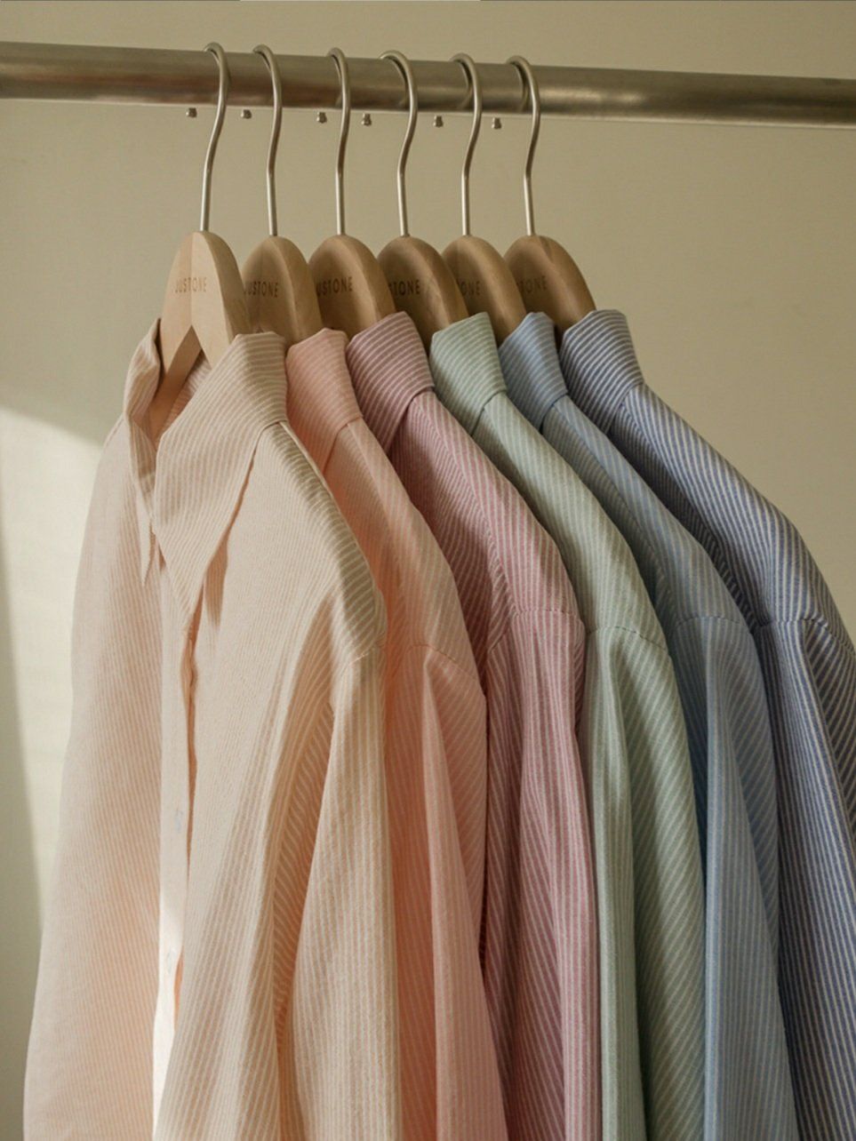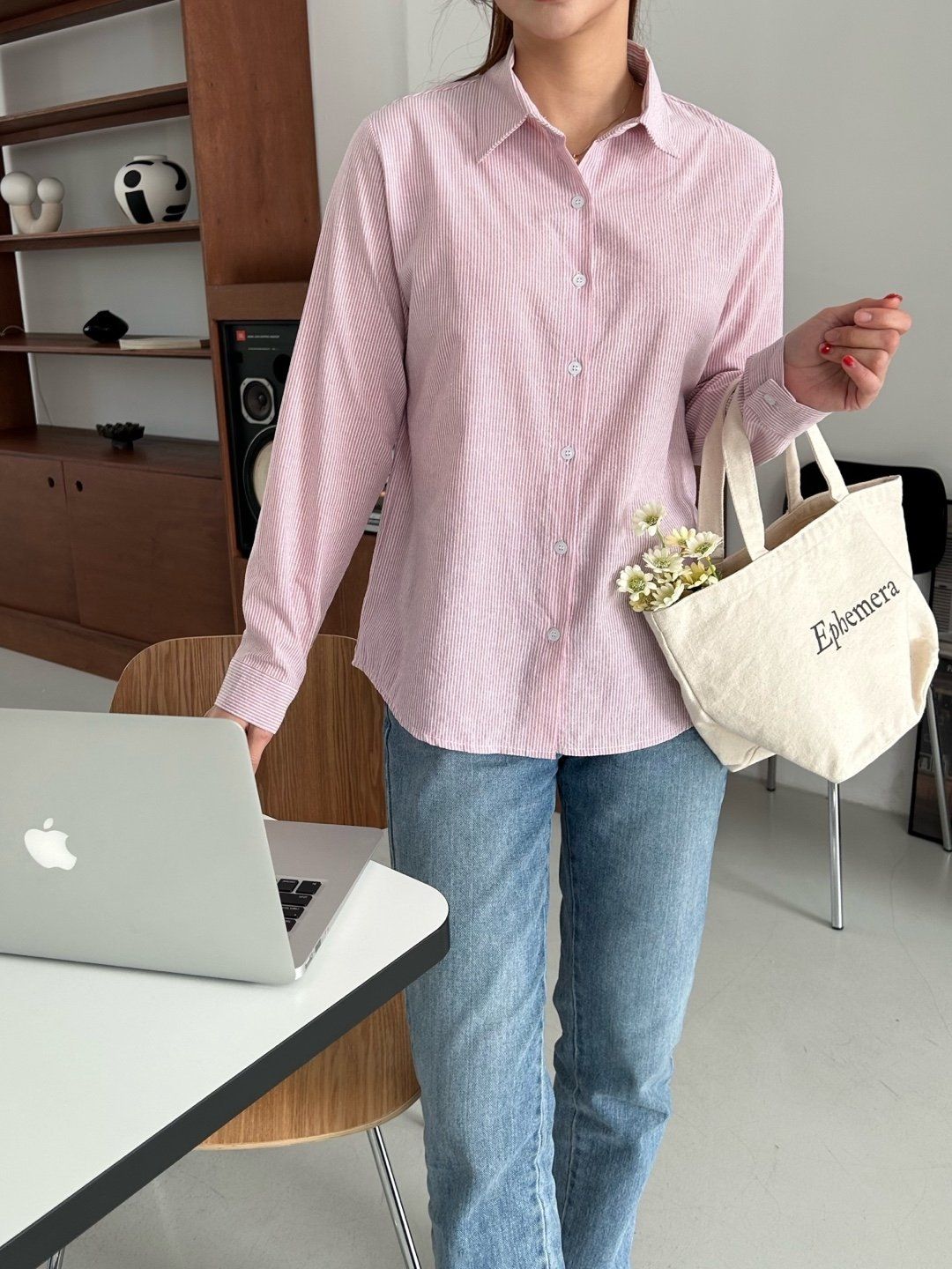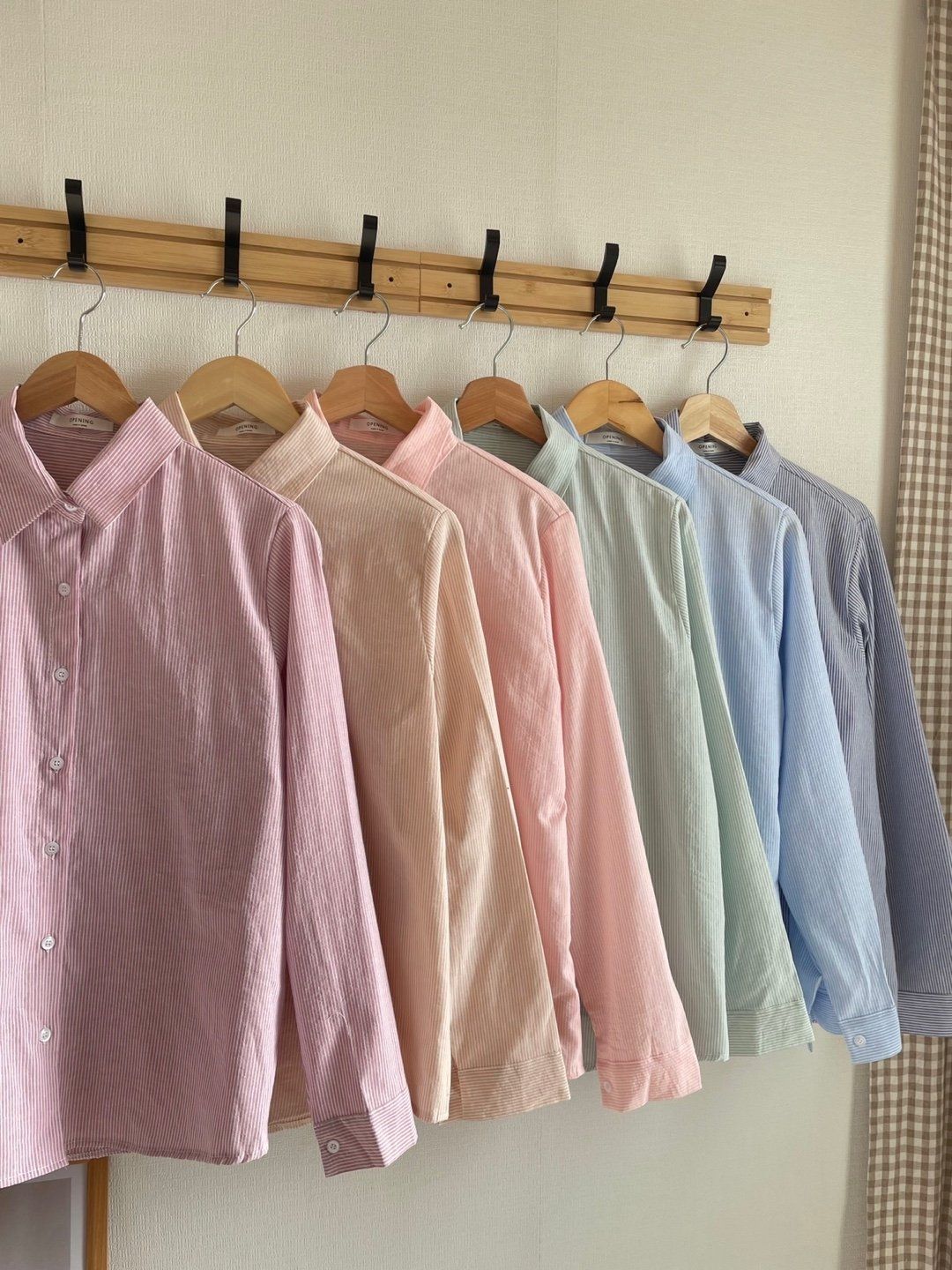 スプリングストライプシャツ デイリー 国内製作 ストライプ アウター ベーシック 人気再入荷 ボーダー