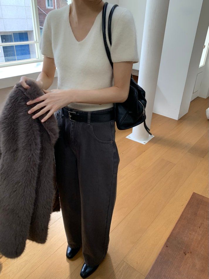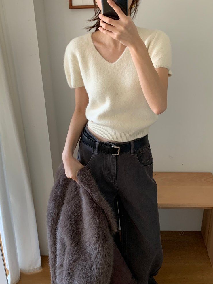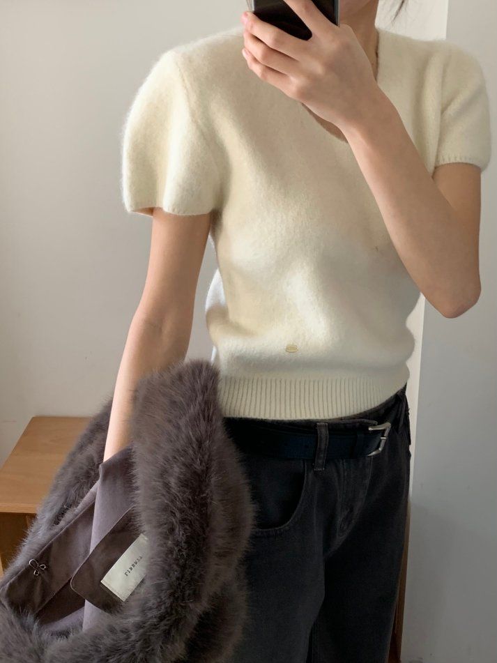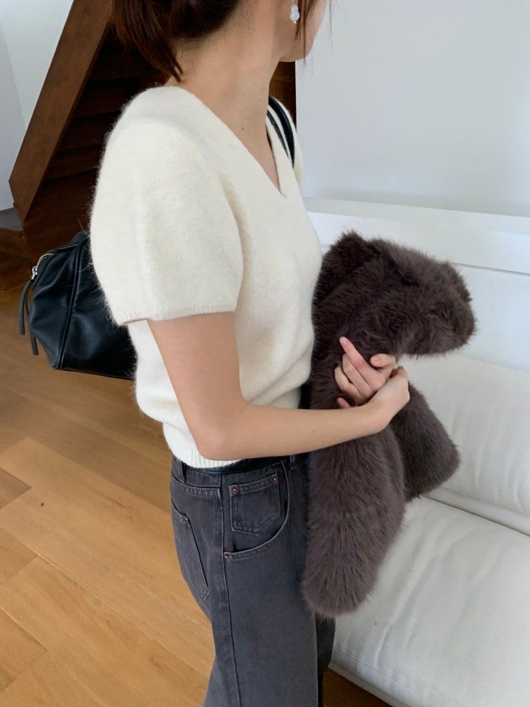 ラビット 半袖 ニット (ぽかぽか 冬 アンゴラ デイリー 冬 コーデ ゲストルック
