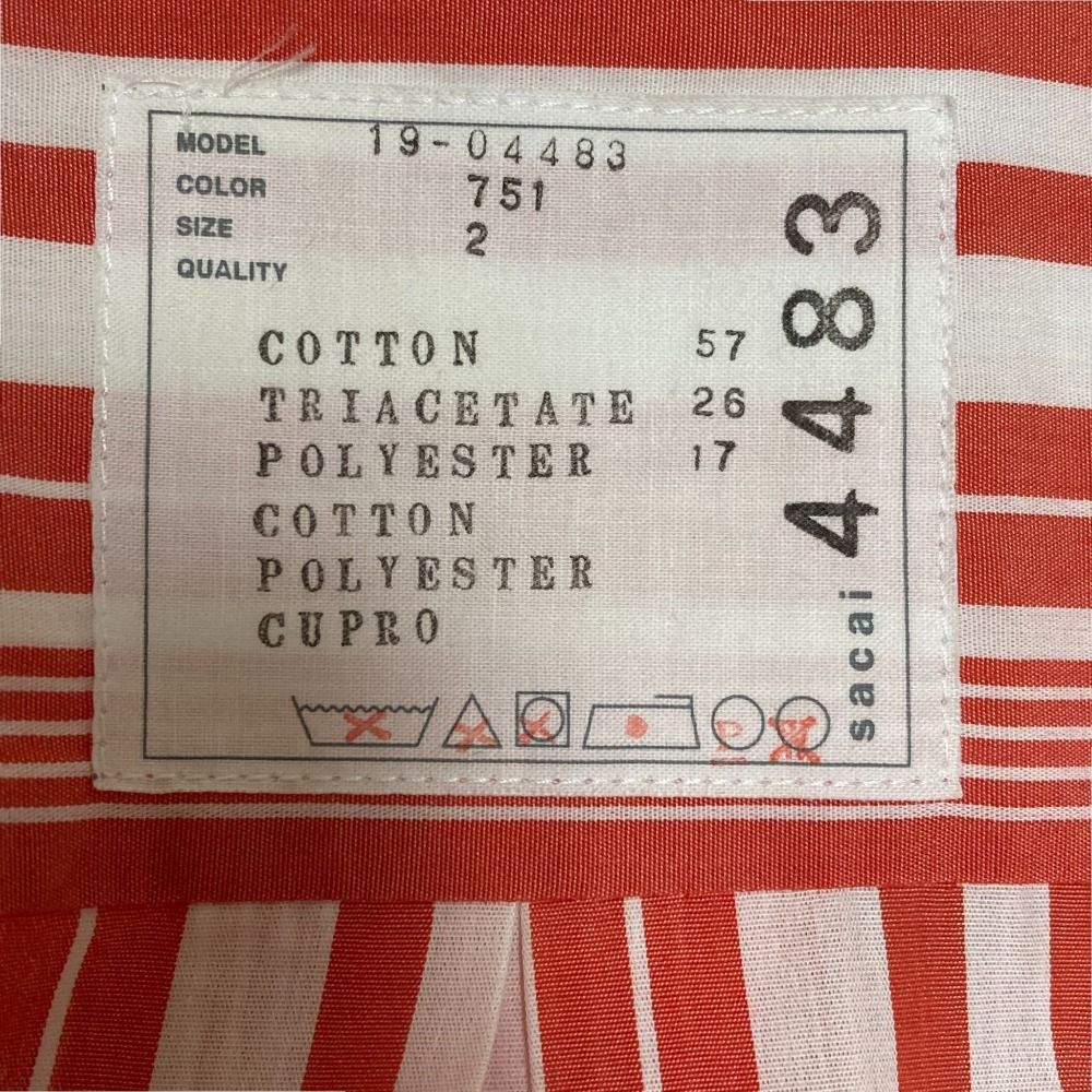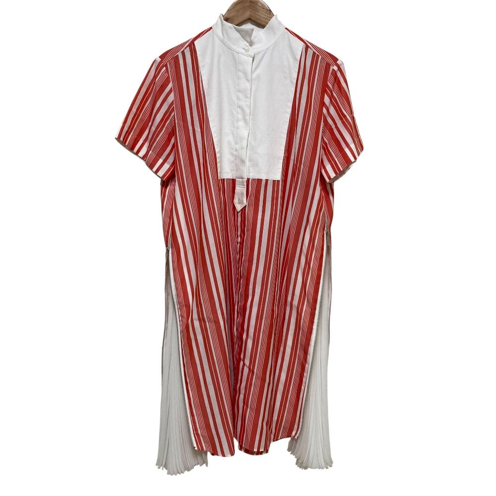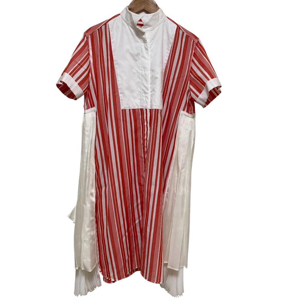 美品 sacai サカイ ストライプ シャツワンピース 19-04483 サイズ2 レッド×ホワイト レディース 古着 中古 USED