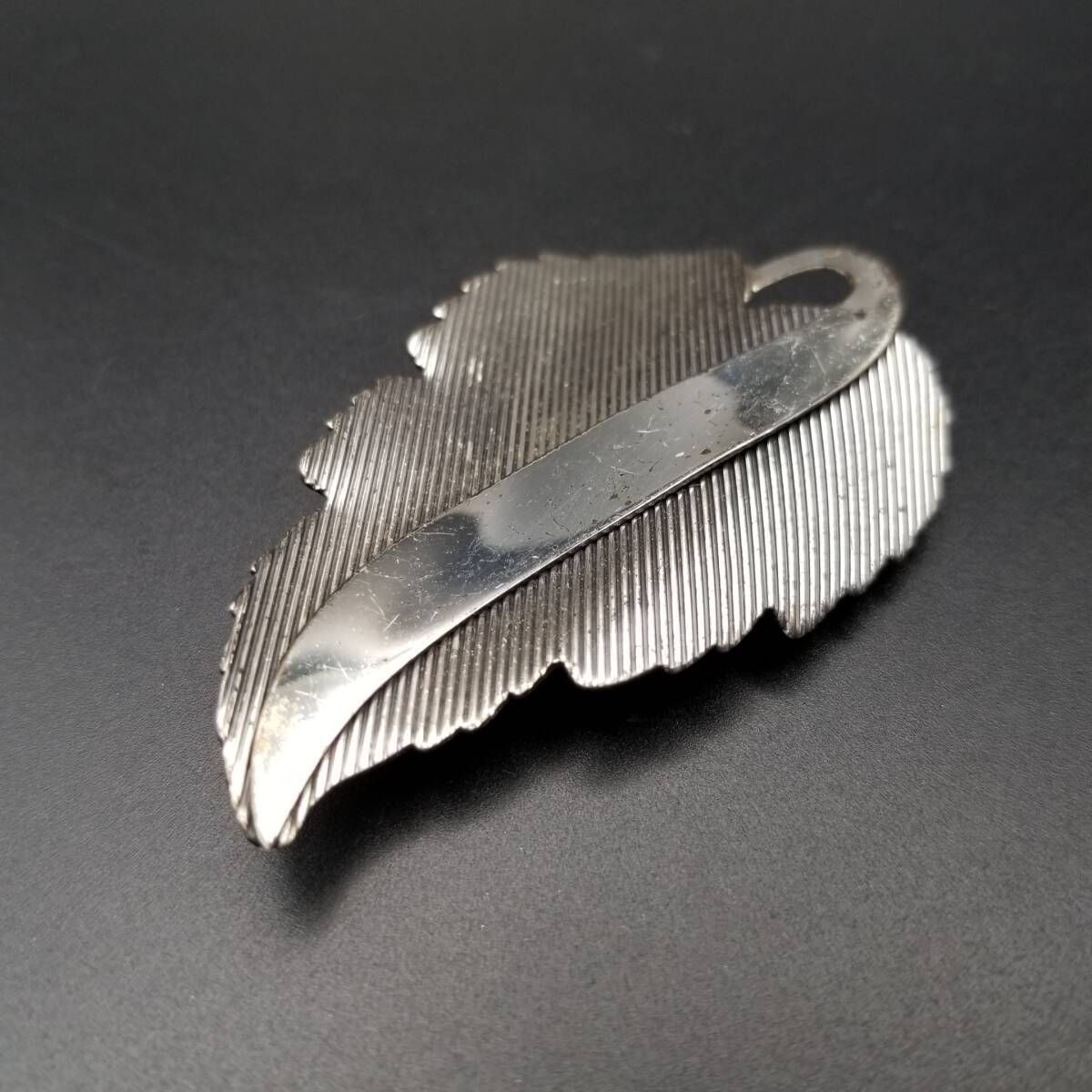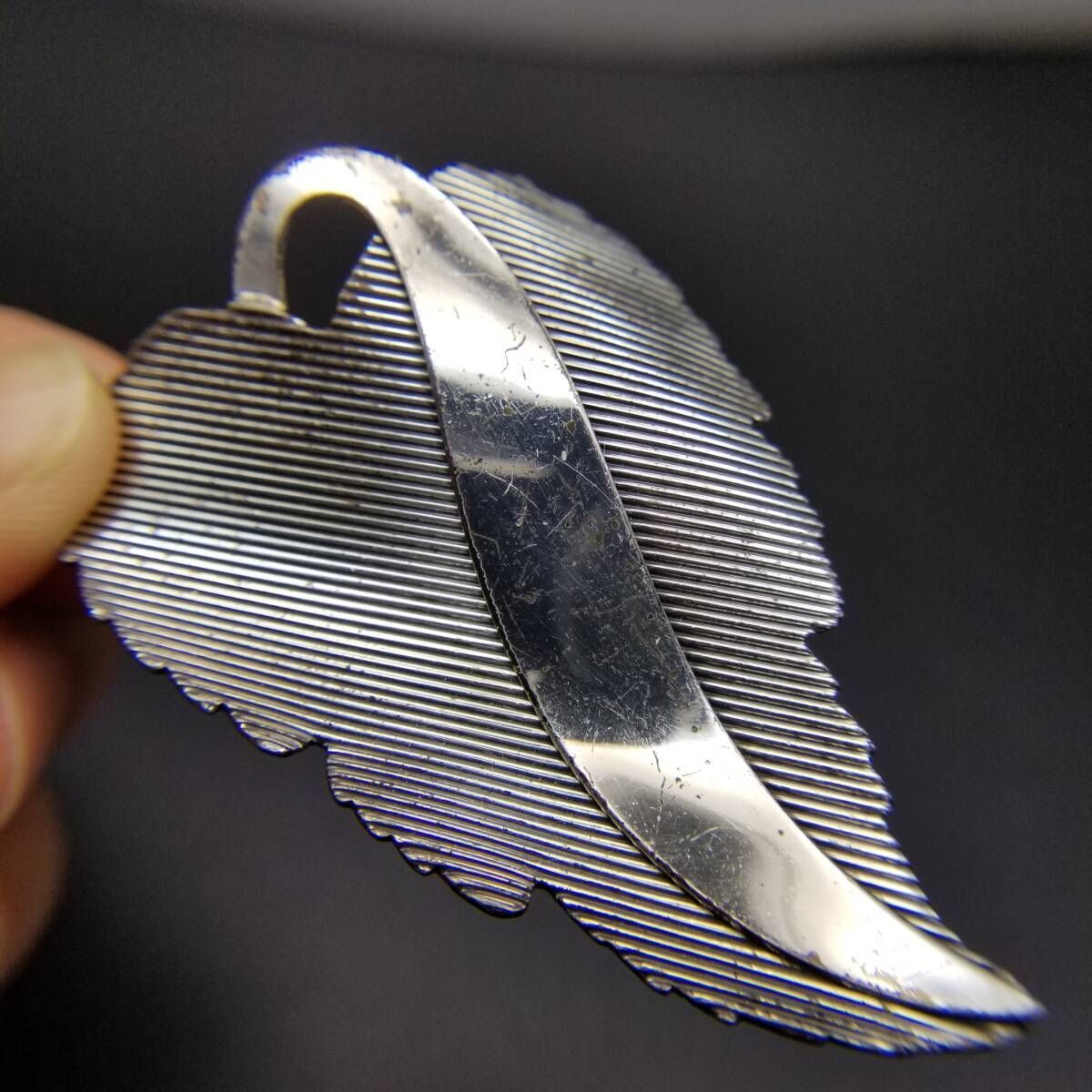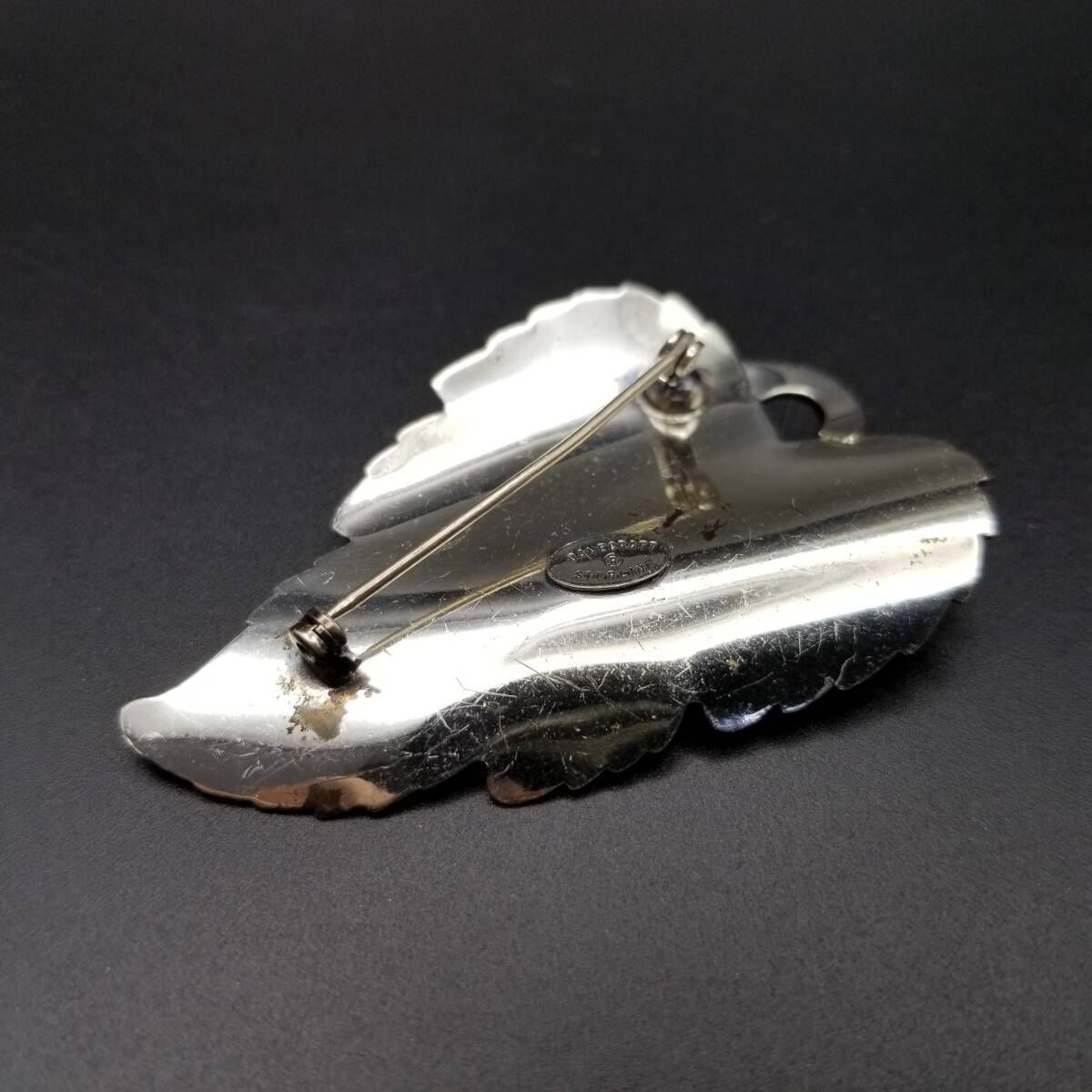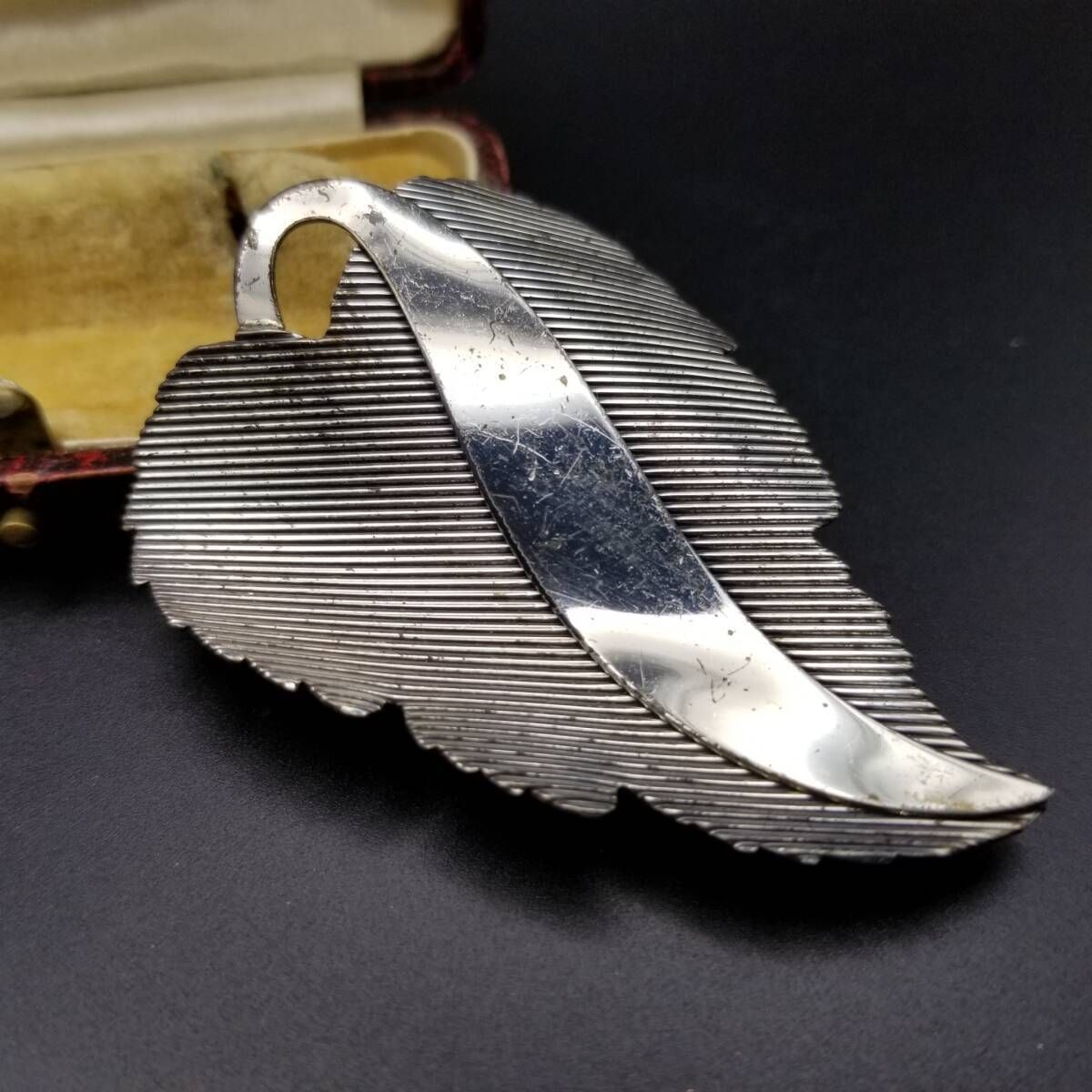 Danecraft 葡萄の葉 ストライプカット ヴィンテージ ブローチ シルバープレート 大ぶり 存在感 Grape leaf チャーム Y16-J