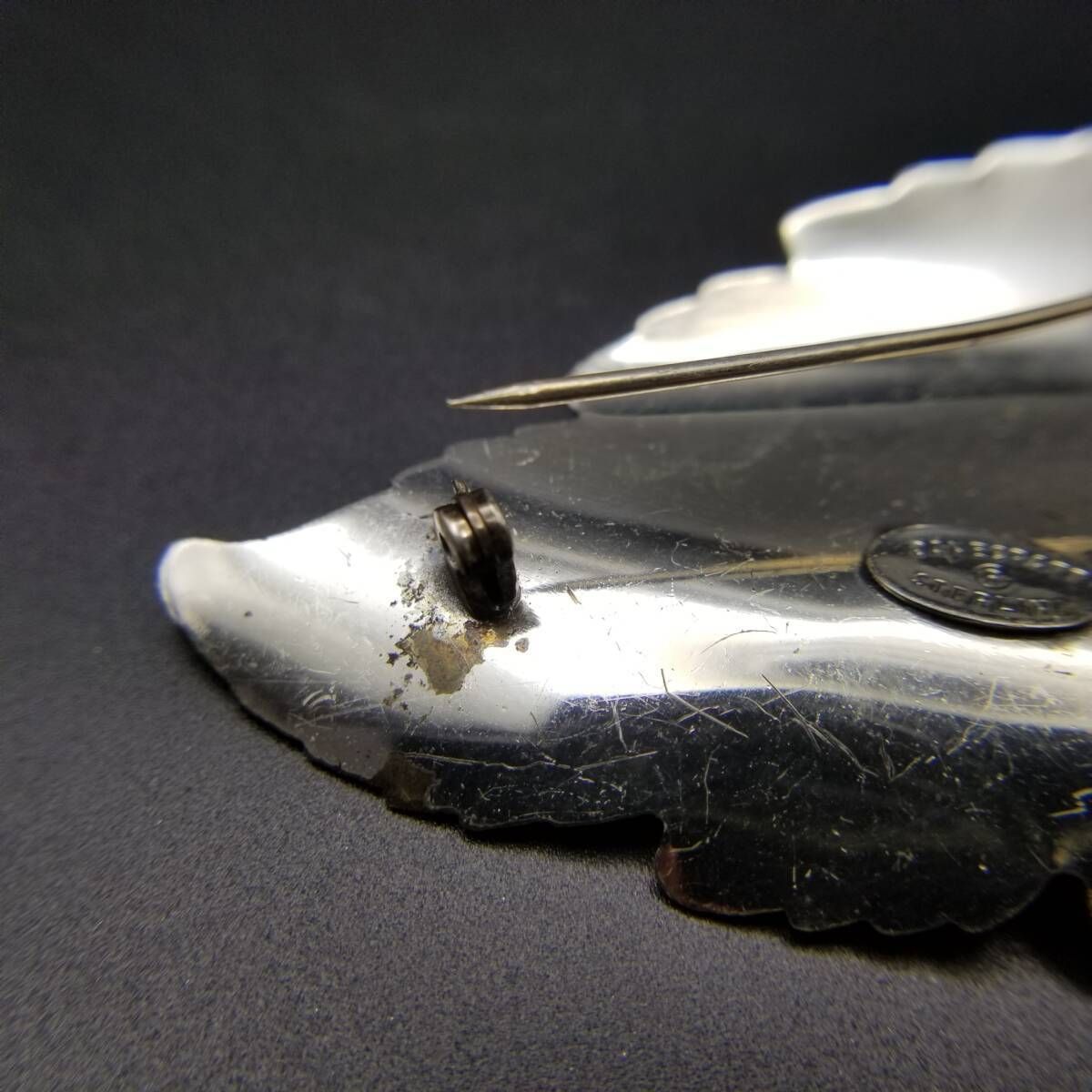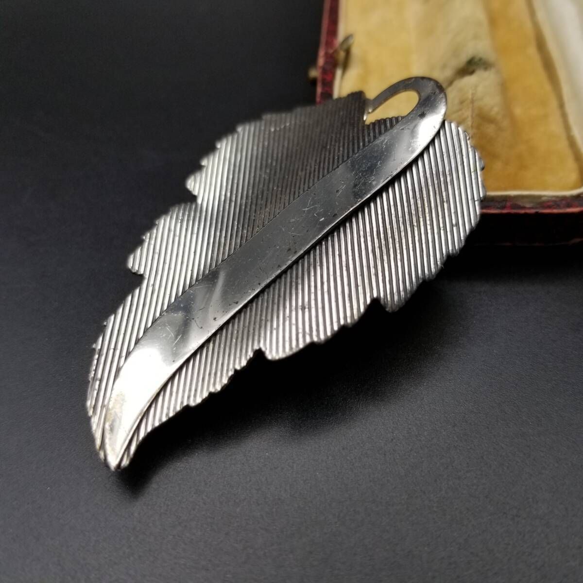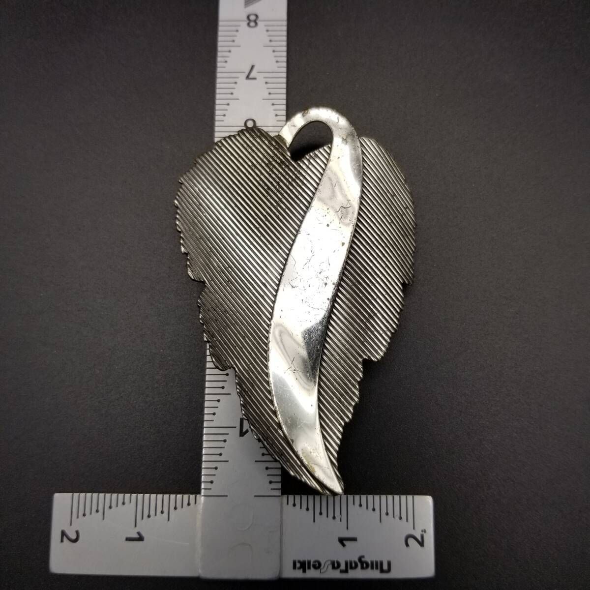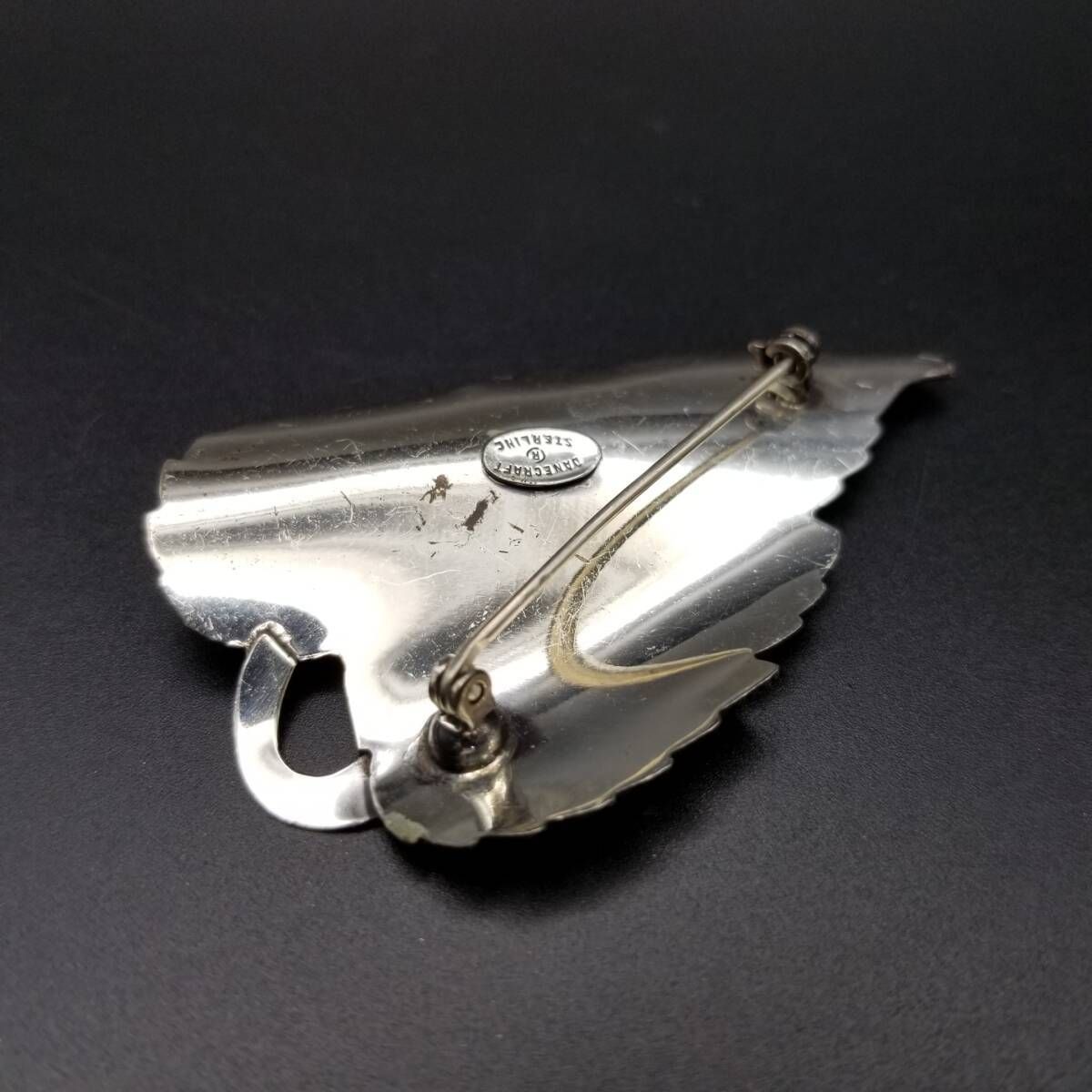 Danecraft 葡萄の葉 ストライプカット ヴィンテージ ブローチ シルバープレート 大ぶり 存在感 Grape leaf チャーム Y16-J
