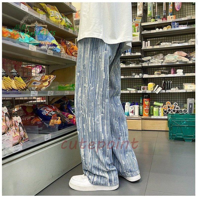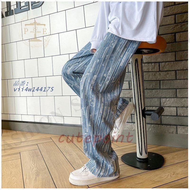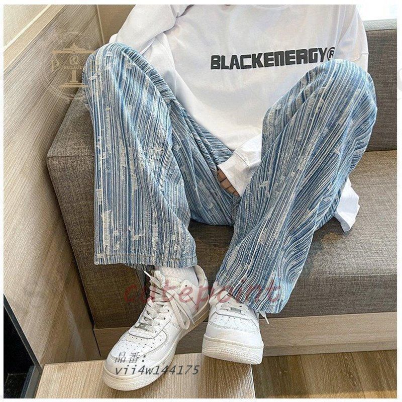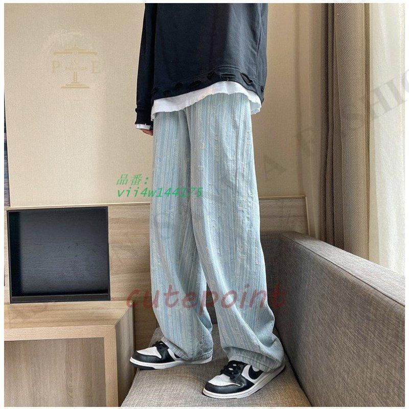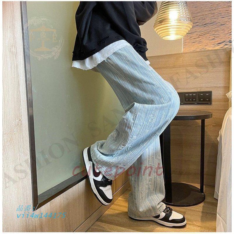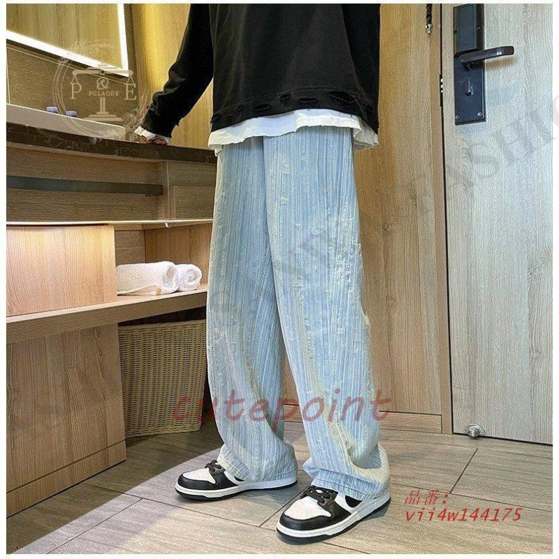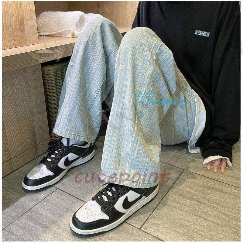 ワイドパンツ ジーンズ メンズ ダメージ加工 ロング丈 おしゃれ デニムパンツ ストレート 個性 ゆったり ストリート系 vii4w144175