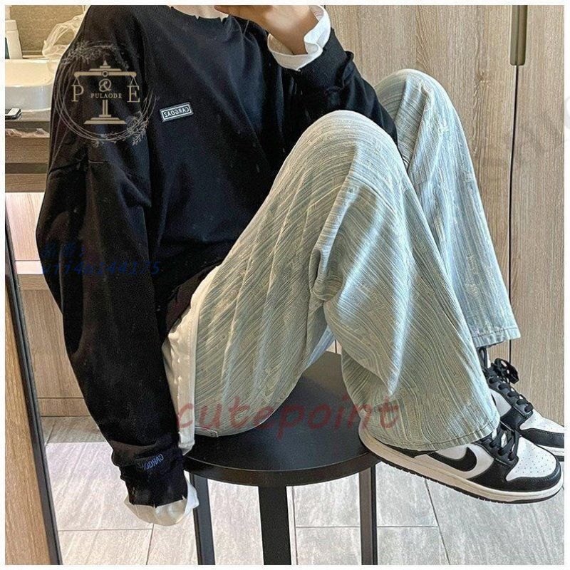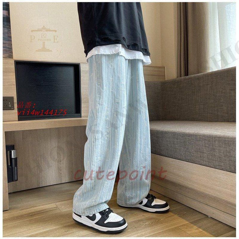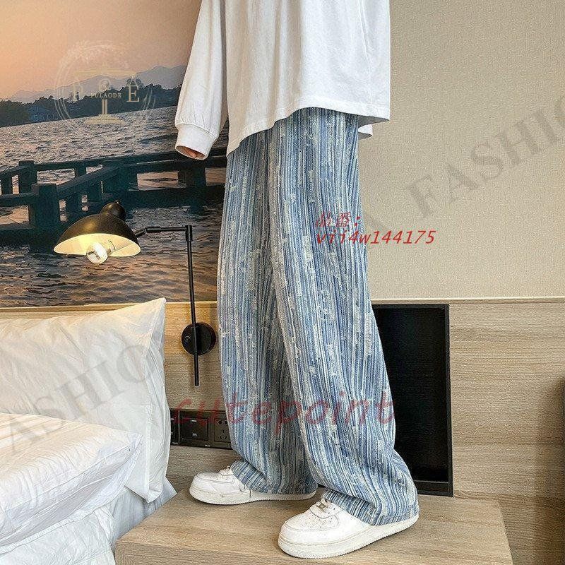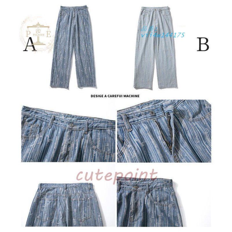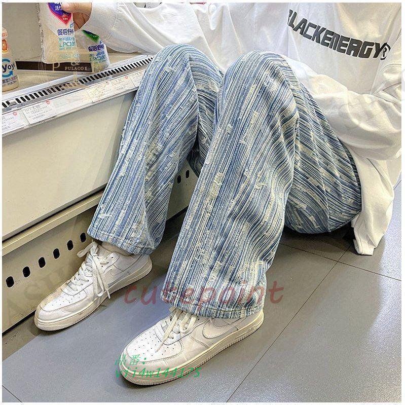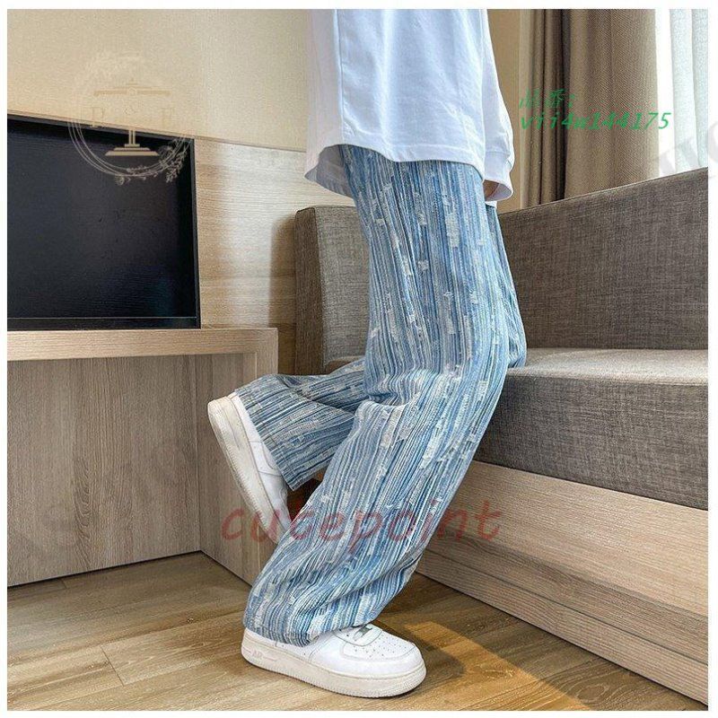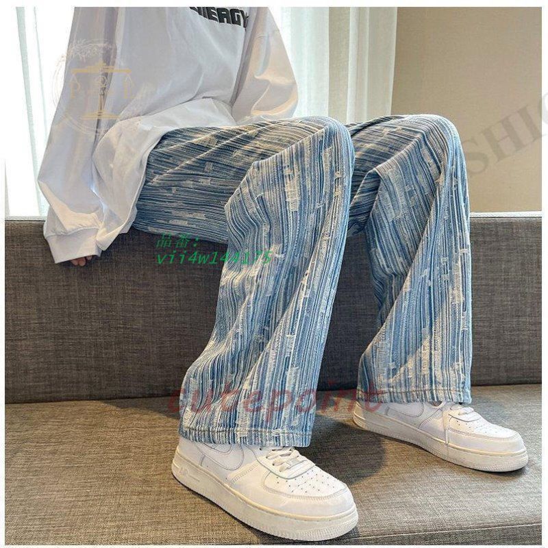 ワイドパンツ ジーンズ メンズ ダメージ加工 ロング丈 おしゃれ デニムパンツ ストレート 個性 ゆったり ストリート系 vii4w144175