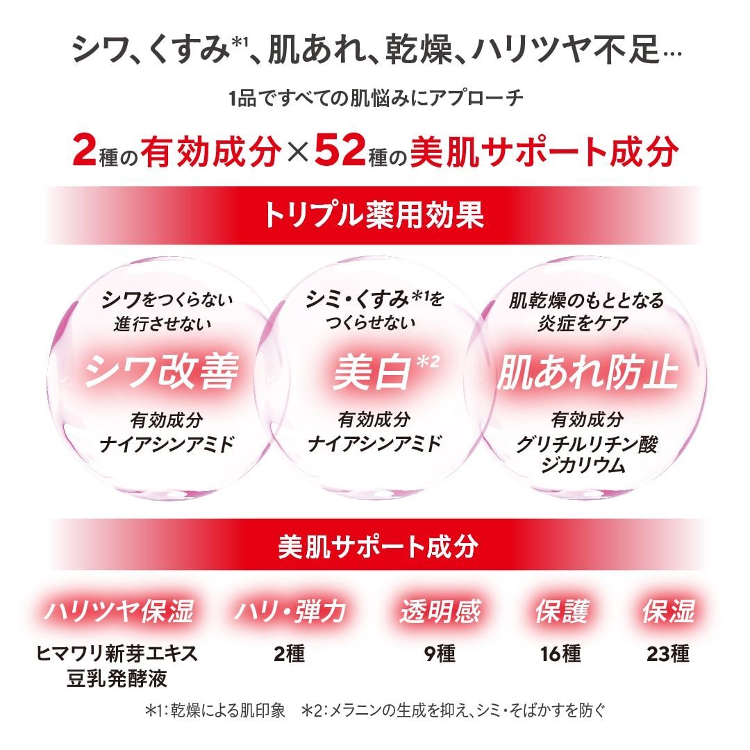 シワ改善・美白・肌荒れ防止の3つの薬用効果を持つ