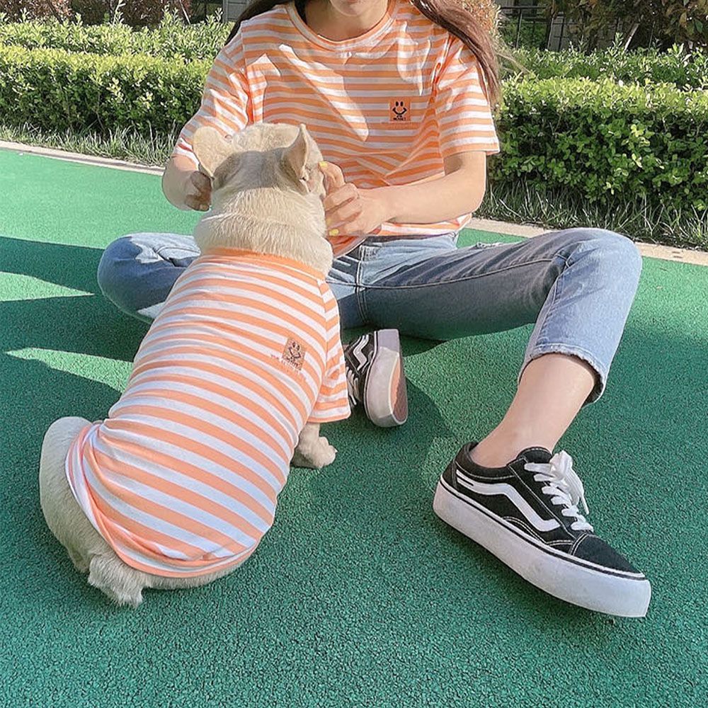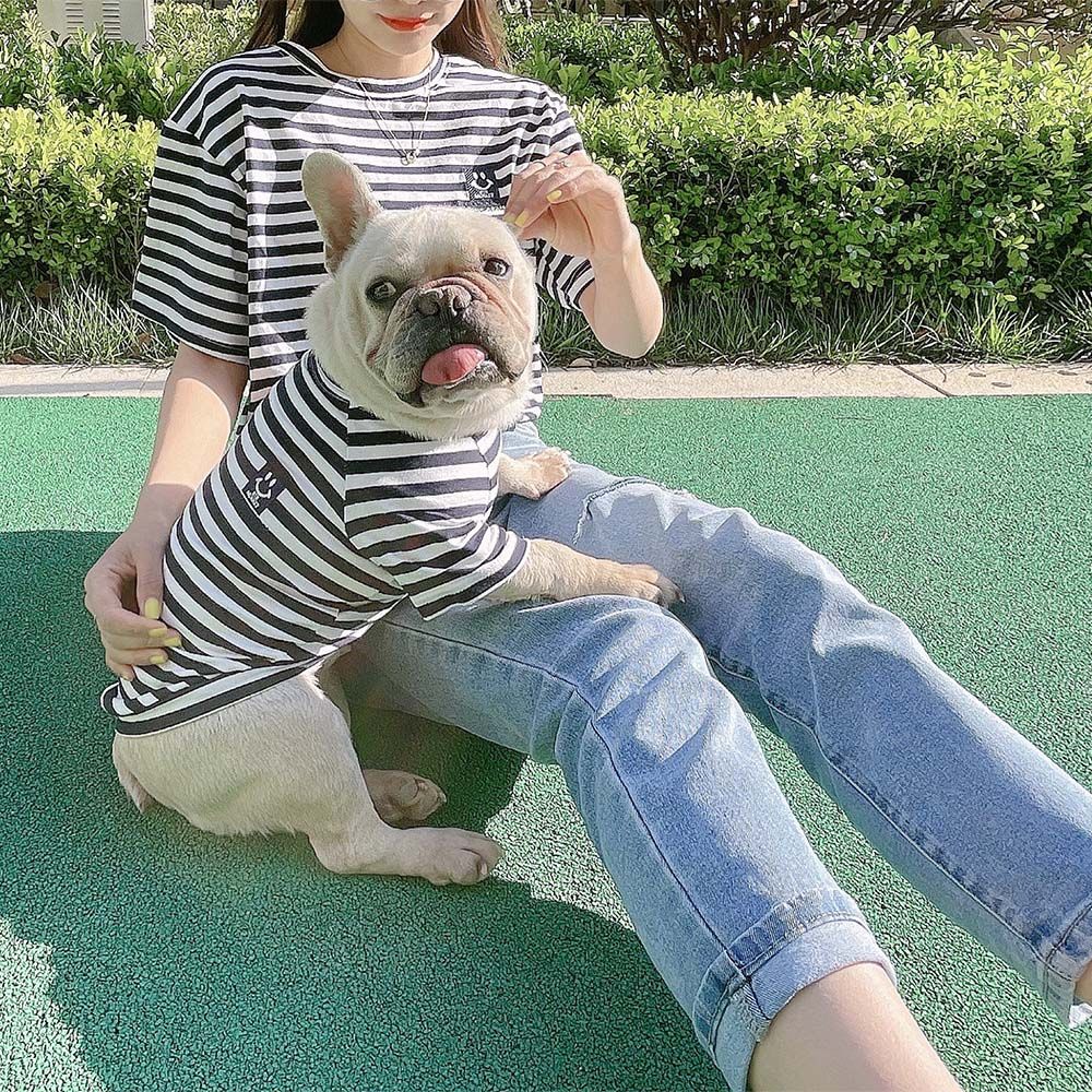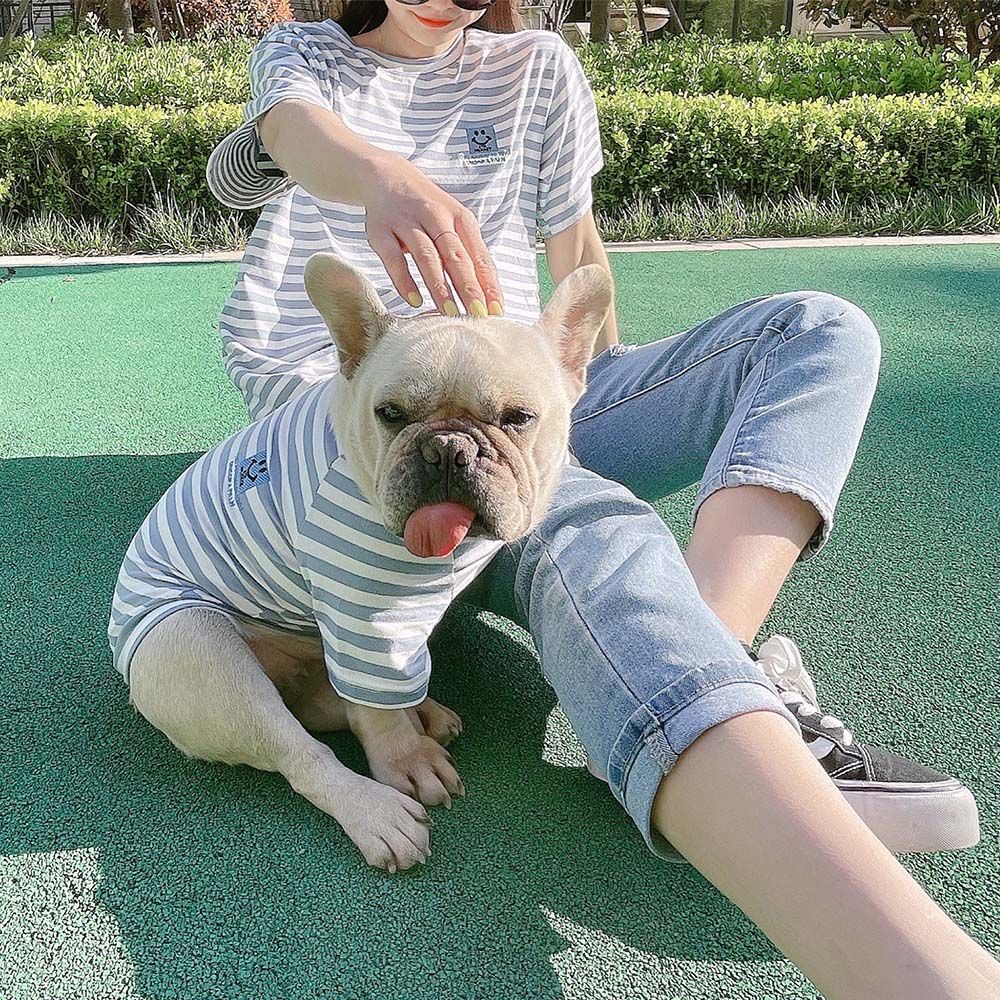 【在庫処分品】【Lサイズ】犬服 小型犬 中型犬服 夏服 スマイル ボーダー Tシャツ ペアルック お揃い なかよし ペアセット