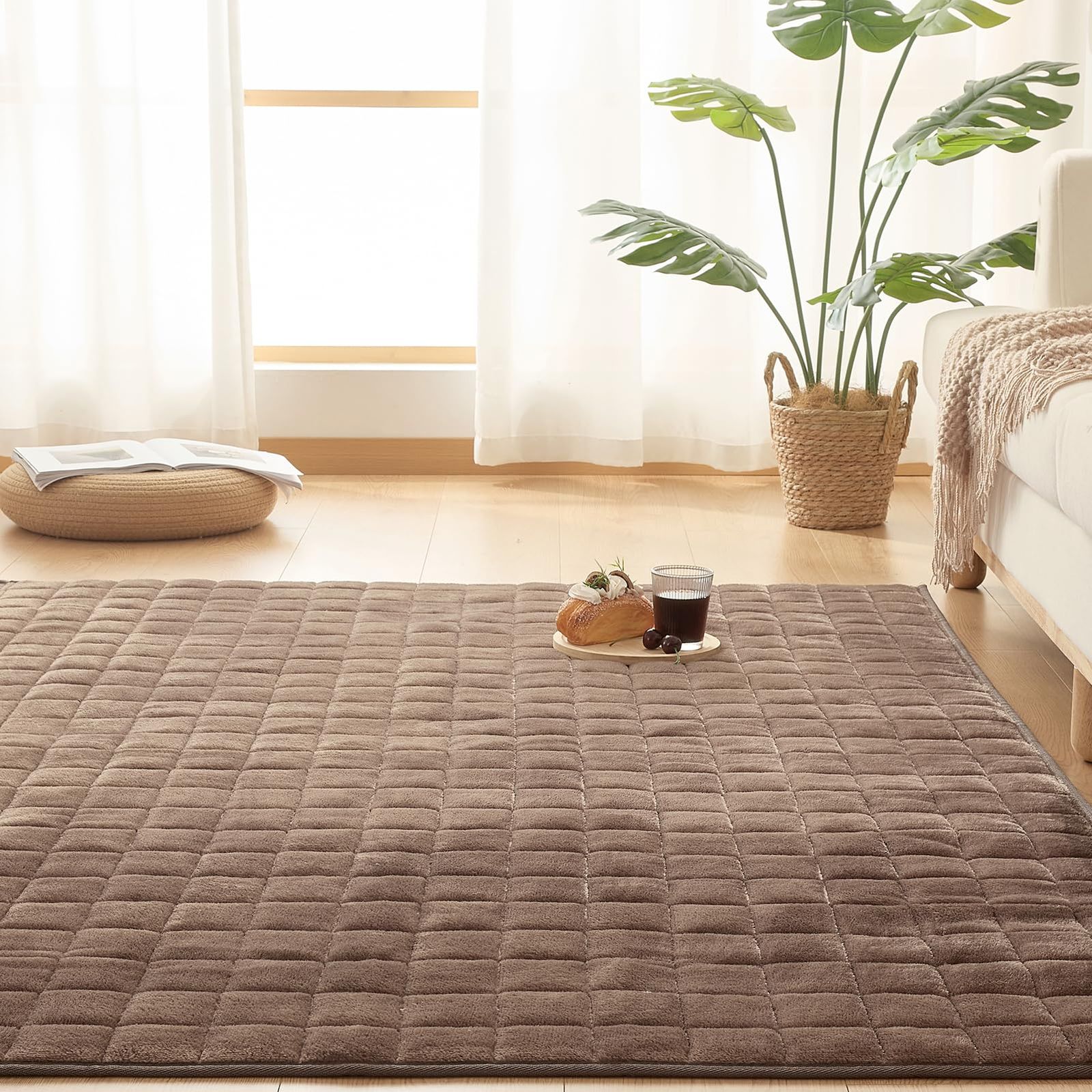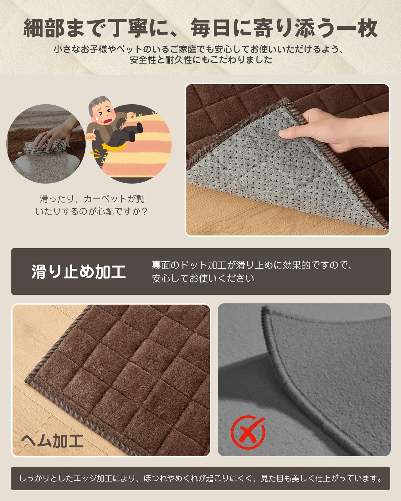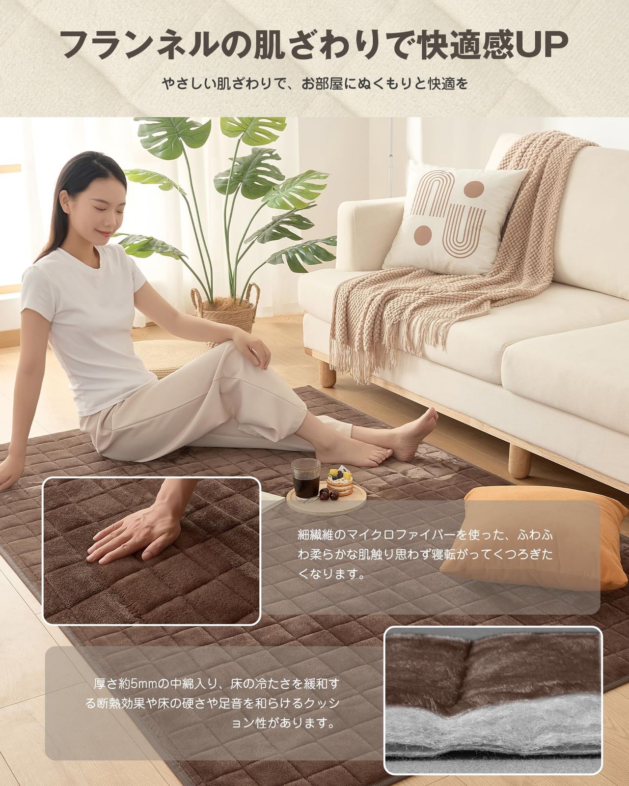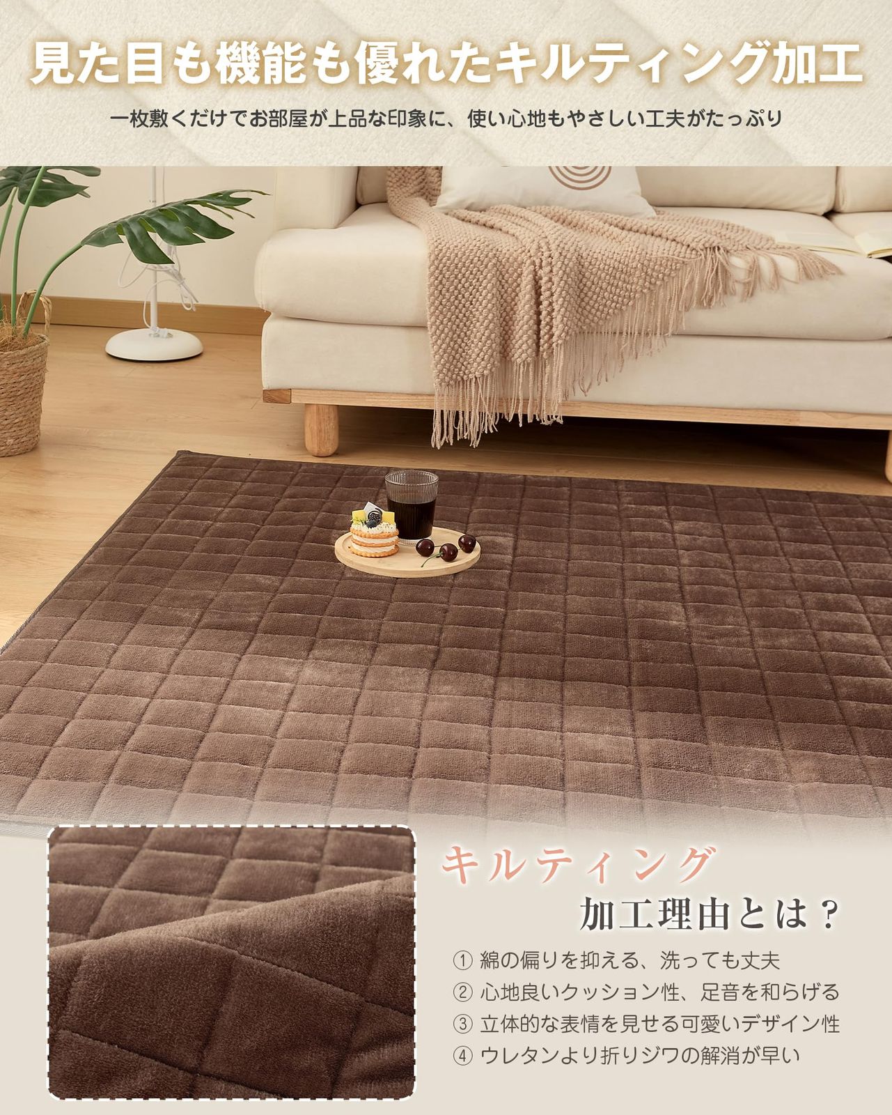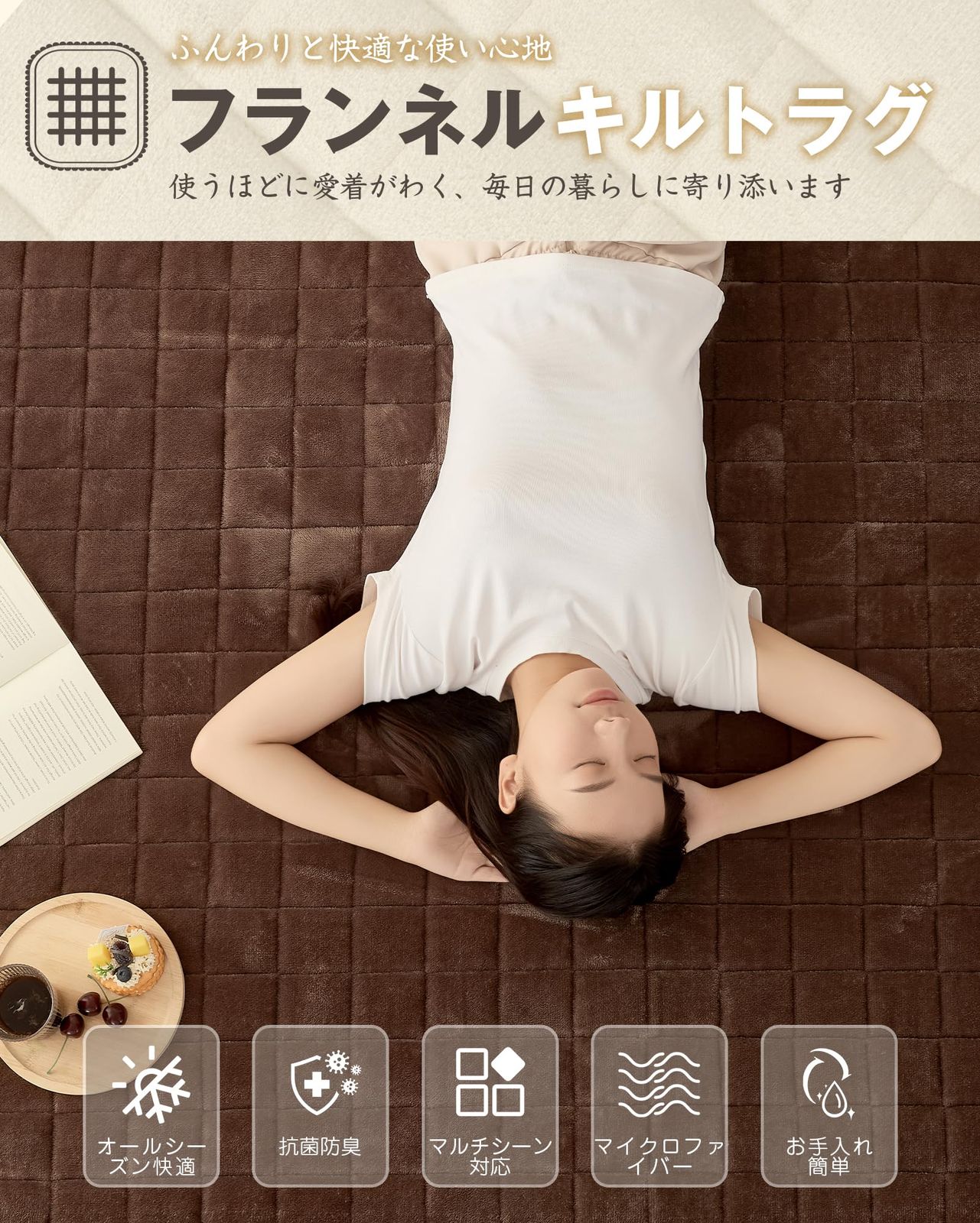 VK Living カーペット キルトラグ ラグマット 絨毯 ラグ 130×190cm(約1.5畳) 洗える 滑り止め付 防ダニ 抗菌 防臭 1年中使えるタイプ 床暖房 ホットカーペット対応 フランネルラグ ブラウン