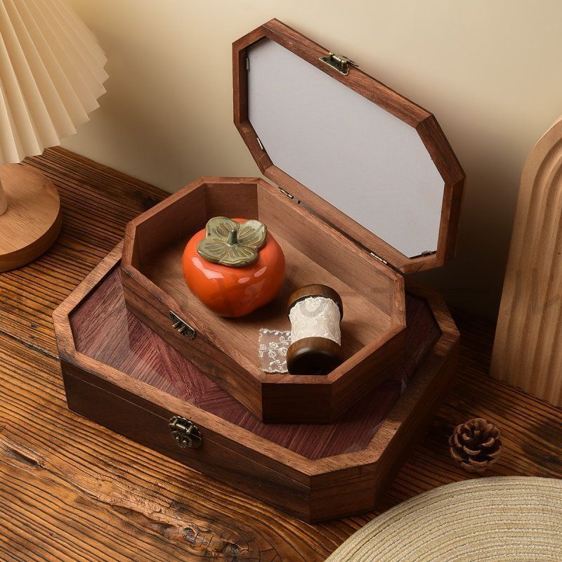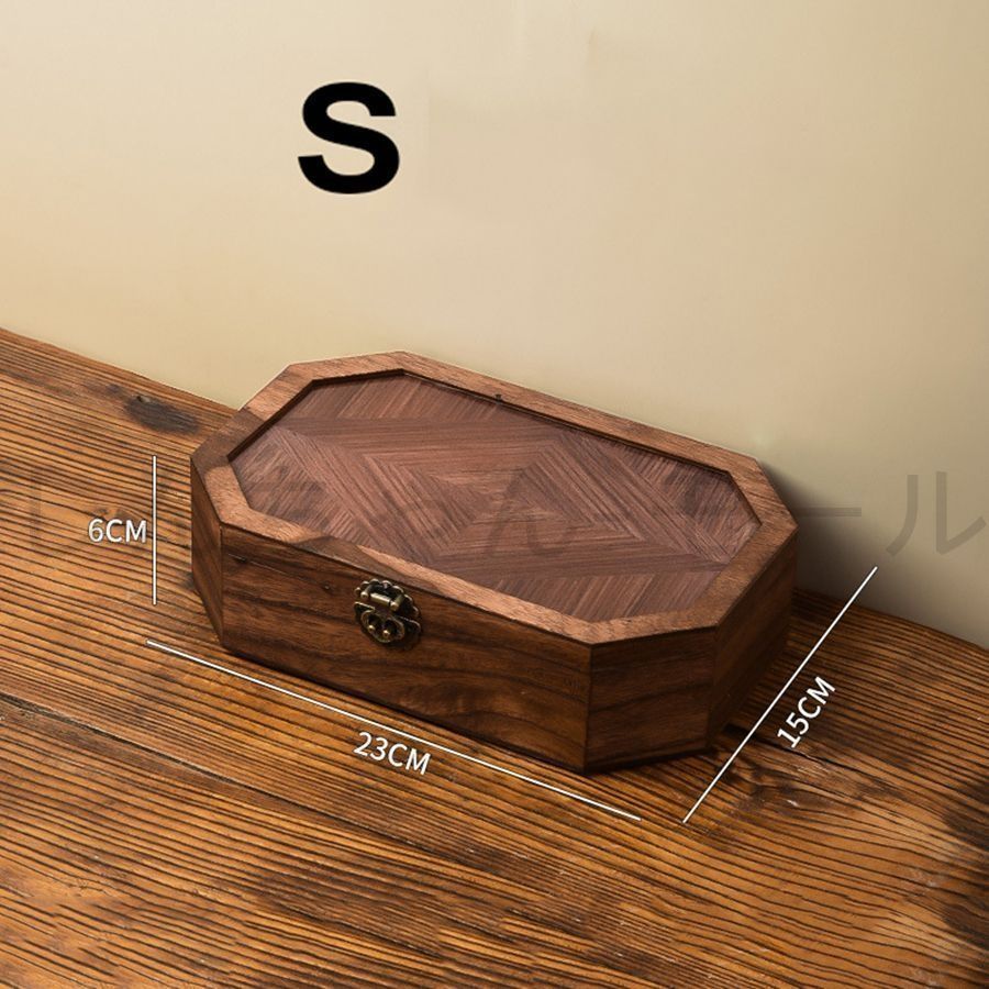 【新品・未使用】ライト高級木製ベゴニアフラワー収納ボックスガラスティートレイレトロキャビネット化粧品雑貨デスクトップストレージ
