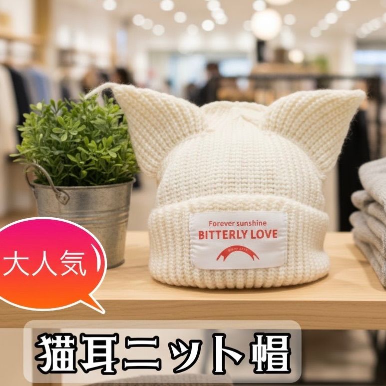 現在韓国で大人気の猫耳のビーニー、ニット帽です