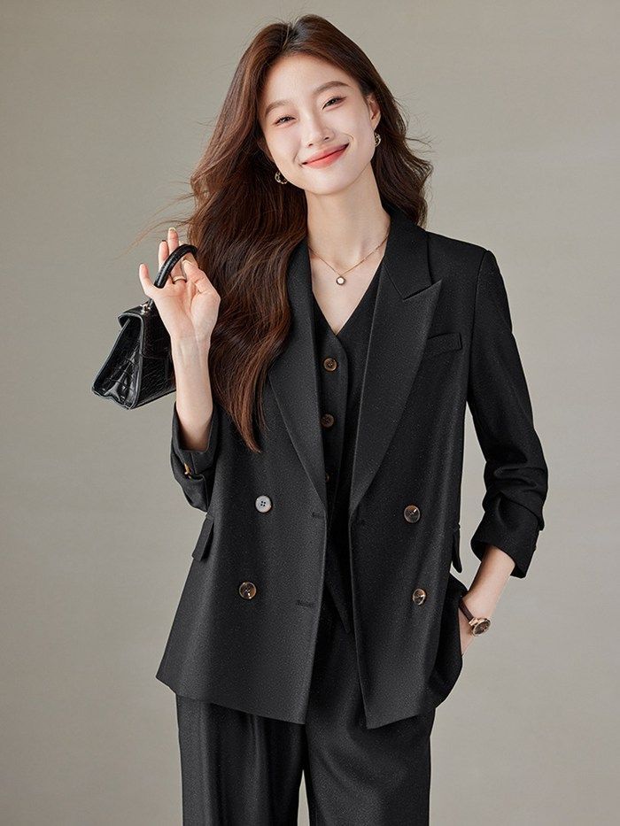 パンツスーツ レディース スーツ 長袖 ジャケット ロングパンツ ゆったり 2点セット シンプル カジュアル おしゃれ 普段着 通勤 OL オフィス 面接 就活 フォーマルスーツ 大人 春 夏 秋 冬