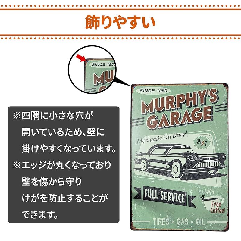 ブリキプレートの魅力 : まるで時代を超えて届いたような、味わい深くスタイリッシュなブリキプレート。古き良き時代のノスタルジックな風合いに、現代的なおしゃれさを融合させたデザインは、飾るだけで空間の雰囲気が一変します。お部屋やカフェ、ガレージ、店舗のアクセントに最適です。