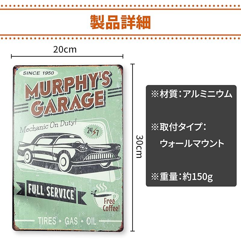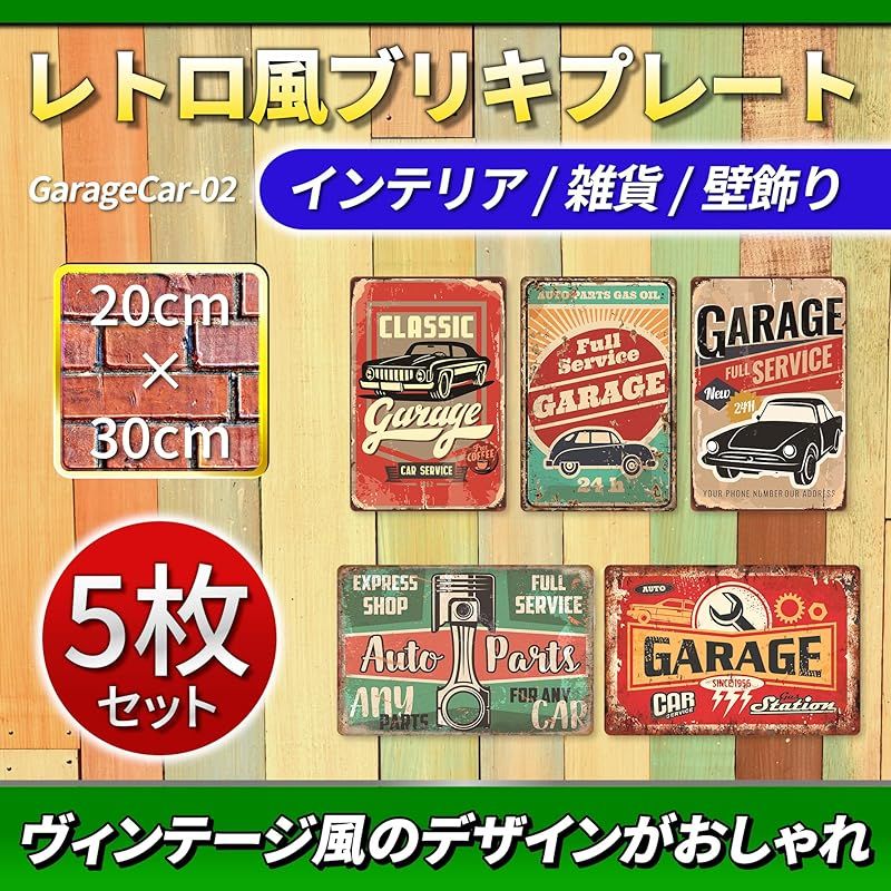 商品仕様 : 材質:アルミニウム 取付タイプ:ウォールマウント 重量:約150g/枚 サイズ:20cm×30cm セット内容:5枚セットブリキプレートの魅力 : まるで時代を超えて届いたような、味わい深くスタイリッシュなブリキプレート。古き良き時代のノスタルジックな風合いに、現代的なおしゃれさを融合させたデザインは、飾るだけで空間の雰囲気が一変します。お部屋やカフェ、ガレージ、店舗のアクセントに最適です。アートプレートセット : 5種類のデザインプレートがセットになっており、まとめて飾って統一感を演出するもよし、別々の場所に配置して空間ごとの個性を引き出すのもおすすめです。インテリアの幅が広がり、あなたのセンスが際立ちます。プレミアムな質感 : 素材には耐久性に優れたアルミニウムを使用。プレミアムゲージの金属が生み出す独特の風合いとツヤ感が、長年使っても色褪せることなく美しい状態をキープ。屋内はもちろん、屋外の使用にも適しており、玄関や庭先のアクセントにも。喜ばれる個性派ギフト : おしゃれで個性的なデザインは、誕生日や新築祝い、開店祝いなどの贈り物としてもぴったり。受け取った方の記憶に残る、特別なギフトになります。