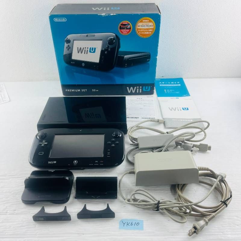YK610【完品すぐ遊べるセット】Nintendo WiiU プレミアムセット ブラック 家庭用ゲーム機 任天堂 ニンテンドー Wii 黒 本体 パッド タッチペン コード類 取扱説明書 箱あり