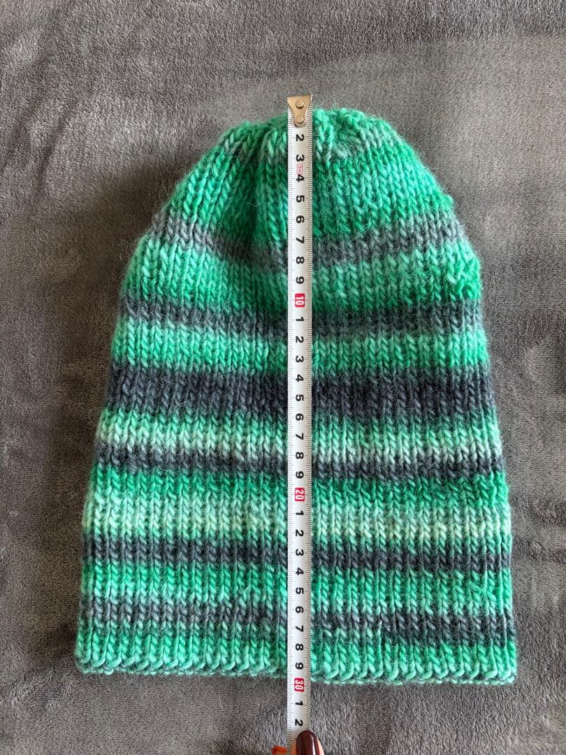 緑とグレーのストライプニット帽