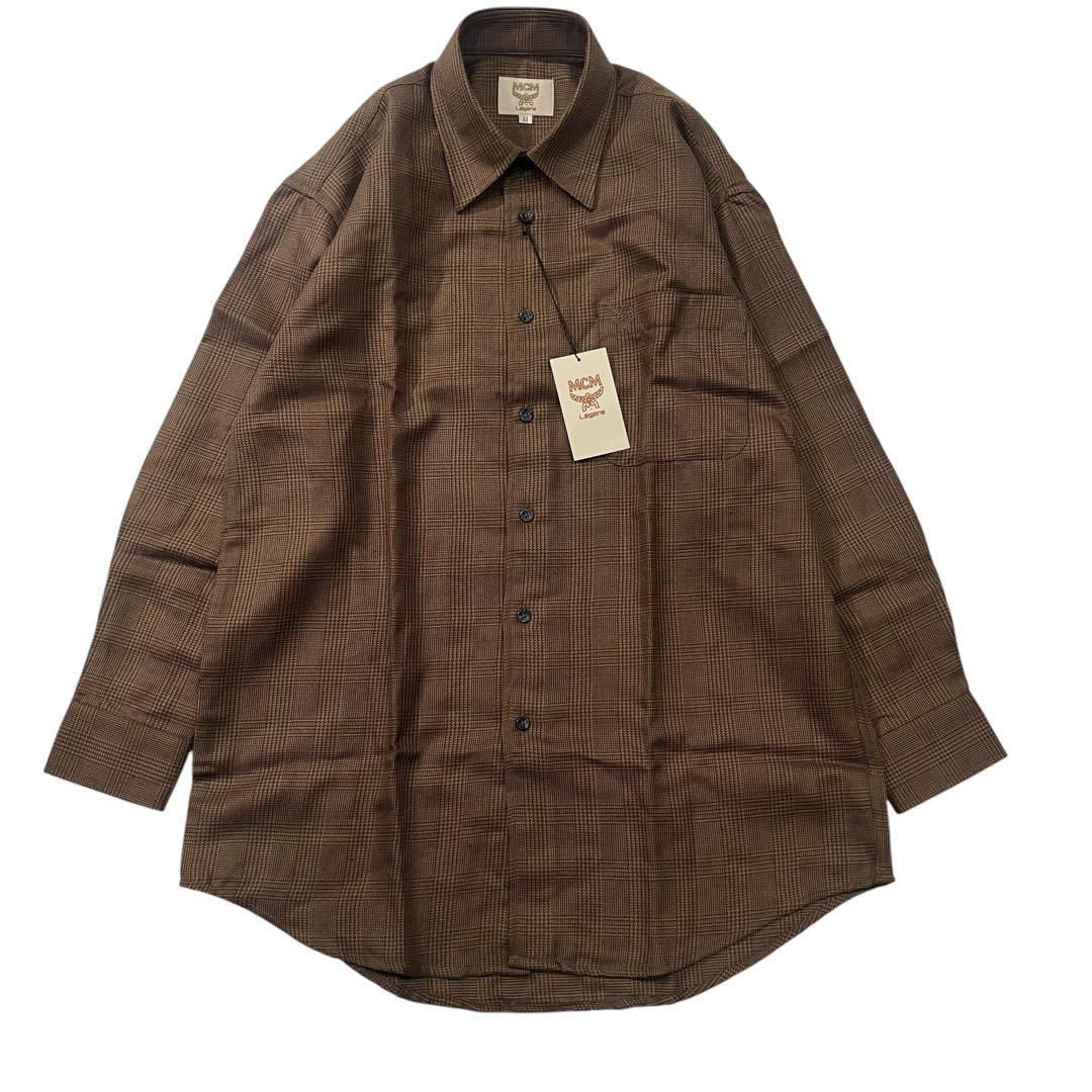 未使用 タグ付き MCM ブラウン チェック柄 長袖シャツ Mサイズ