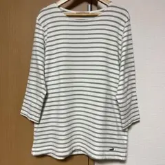 コルザ 七分袖 カットソー 黒ストライプ風デザイン ゆったりトップス 春秋コーデ