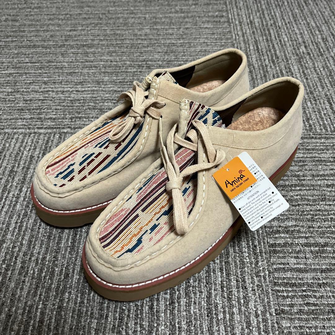 【チャイハネ】Amina ガラビシューズ(モカシン)ベージュ/LLサイズ