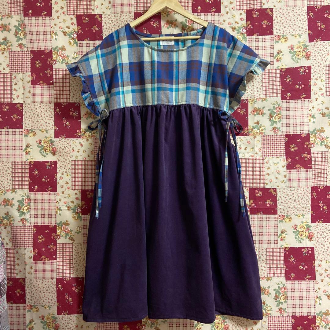 チュニックワンピース 起毛 ネイビー ベージュ パープル系 ハンドメイド