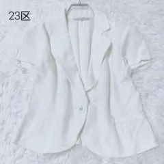 ニジュウサンク 半袖ジャケット ホワイト 羽織 綿 きれいめカジュアル オフィス