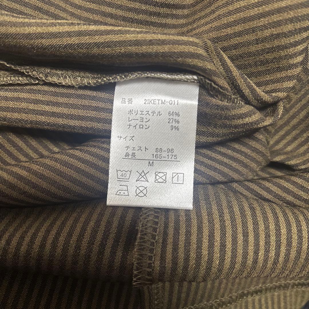 ikka イッカ ストライプ Tシャツ カットソー カーキ 透け感 クルーネック