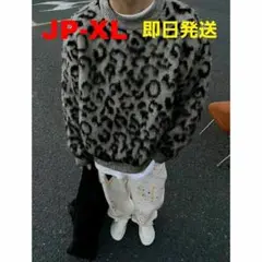 【即日発送】【JP-XL】 ダークグレー レオパード柄 ルーズニット セーター