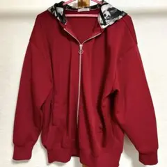 赤 ジップアップ パーカー フード付き カジュアル 薄手